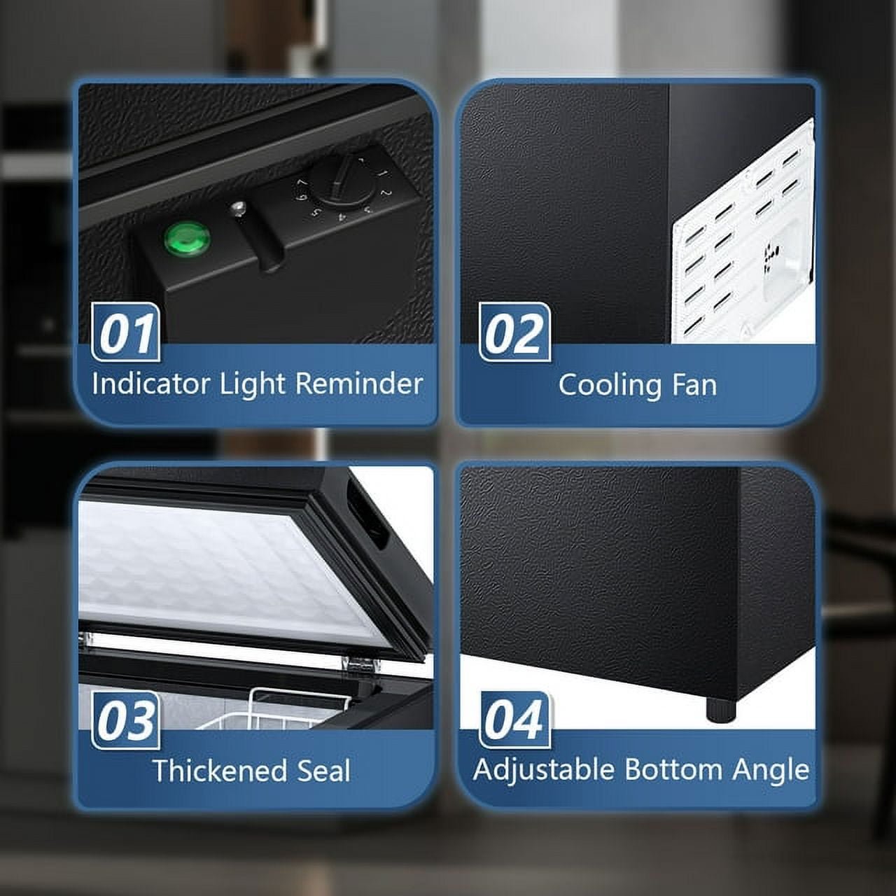- Precise Temperature Control: Enjoy precise control over your freezing needs with the 7-level temperature settings of this chest freezer. You can easily adjust the temperature from mild chilling (level 1) to ultra-low freezing (level 7). The temperature range spans from 6.8 ℉ to -7.6 ℉, allowing you to customize the conditions for optimal food preservation