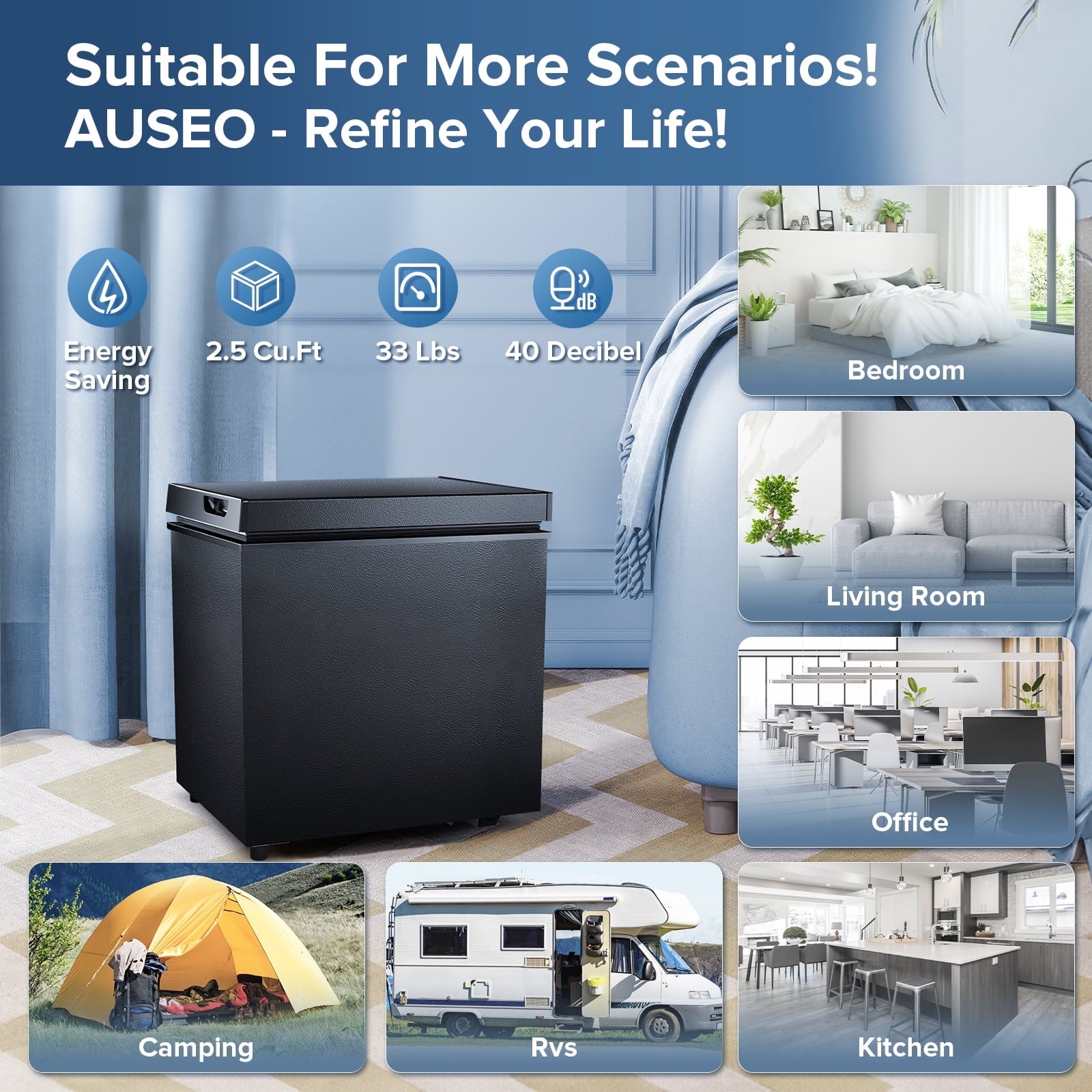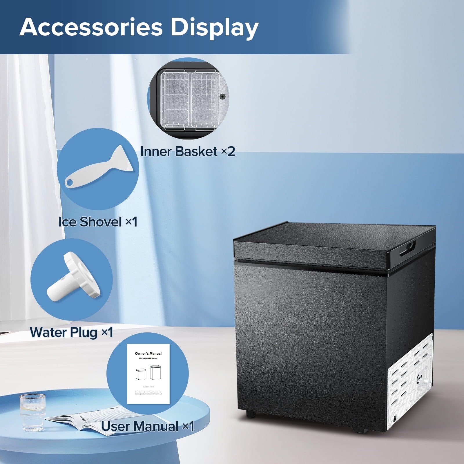 Auseo 2.5 cu ft Chest Freezer Free Standing Top open Door Deep Compact Freezer Suitable for Home/RV/Kitchen/Office-Black
