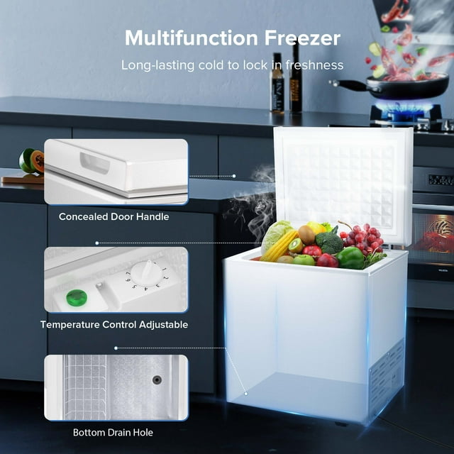 Introducing Auseo 1.8 Cubic Feet Chest Freezer, the perfect solution for all your freezing needs. Designed with convenience and functionality in mind, this compact freezer offers a top-open door, making it easy to access and organize your frozen goods.