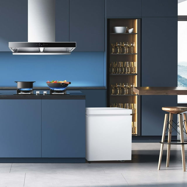 Crafted with a sleek design and a durable construction, our chest freezer adds a touch of elegance to any setting. Its compact size ensures it seamlessly fits into any home, kitchen, office, or bar, maximizing your available space without compromising on storage capacity.