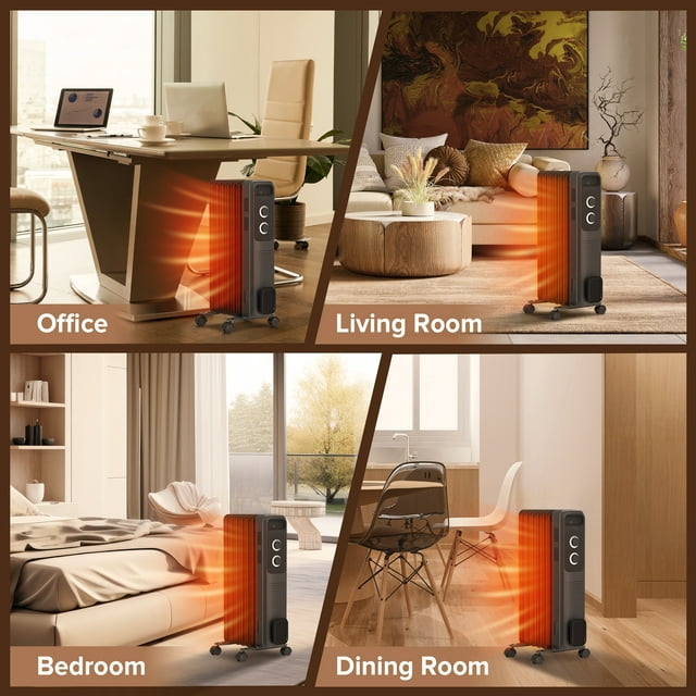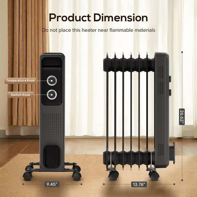 🌟More worry free: The built-in oil is sealed, do not worry about it will leak, and it can improve the conversion rate of electric heating, more energy saving and environmental protection. And the heater will not have harsh noise during operation, you can completely ignore it, in the shortest time to provide you with a quiet and comfortable environment.