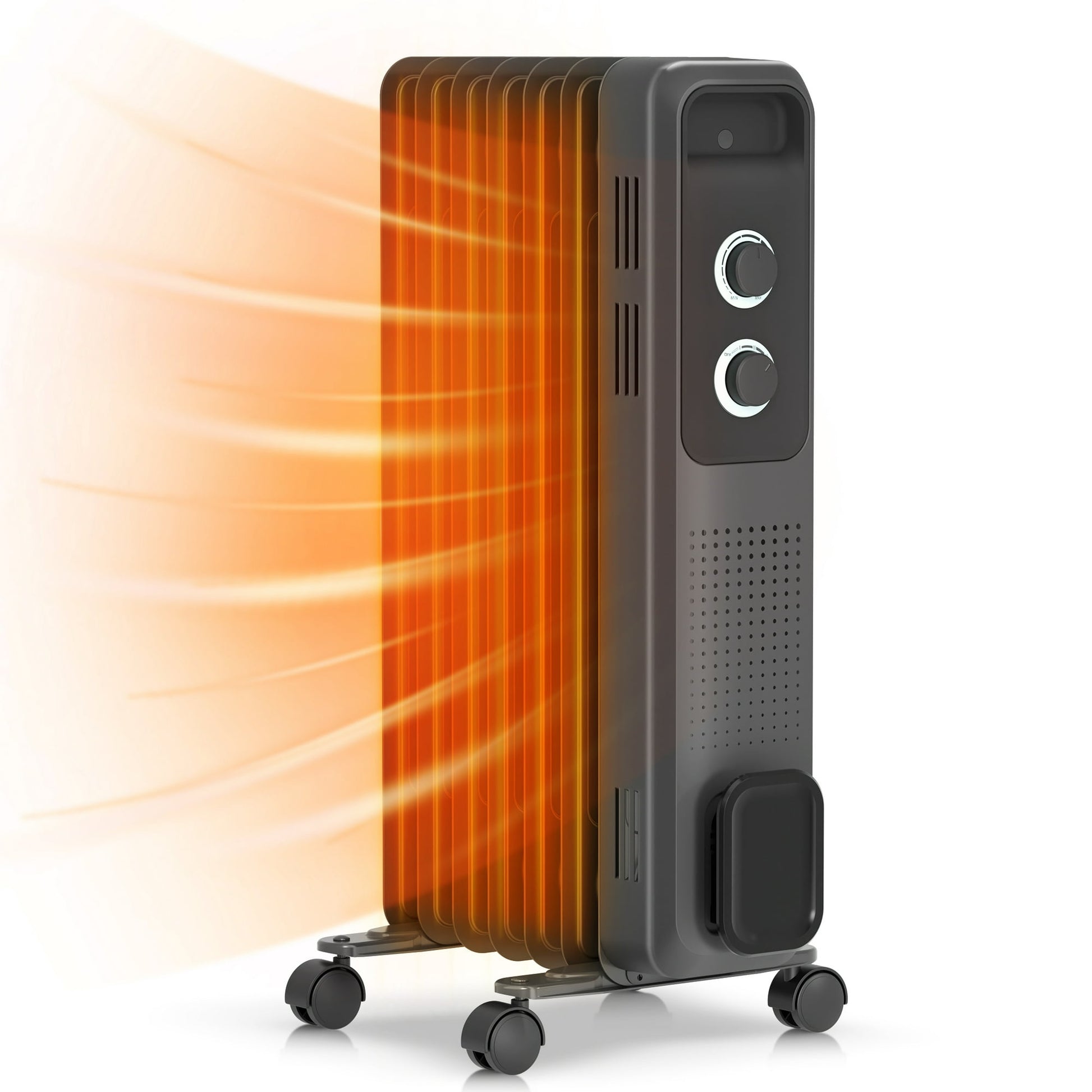 Auseo 1200W Electric Oil Filled Radiator Space Heater, Temperature Regulation, Safety Protection, Cord Storage, Grey