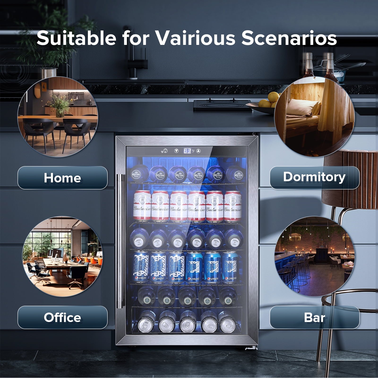 Auseo 152 Can Beverage Refrigerator Cooler, Adjustable Shelves with Glass Door , Digital Temperature, for Bar/Office/Home/Restaurant