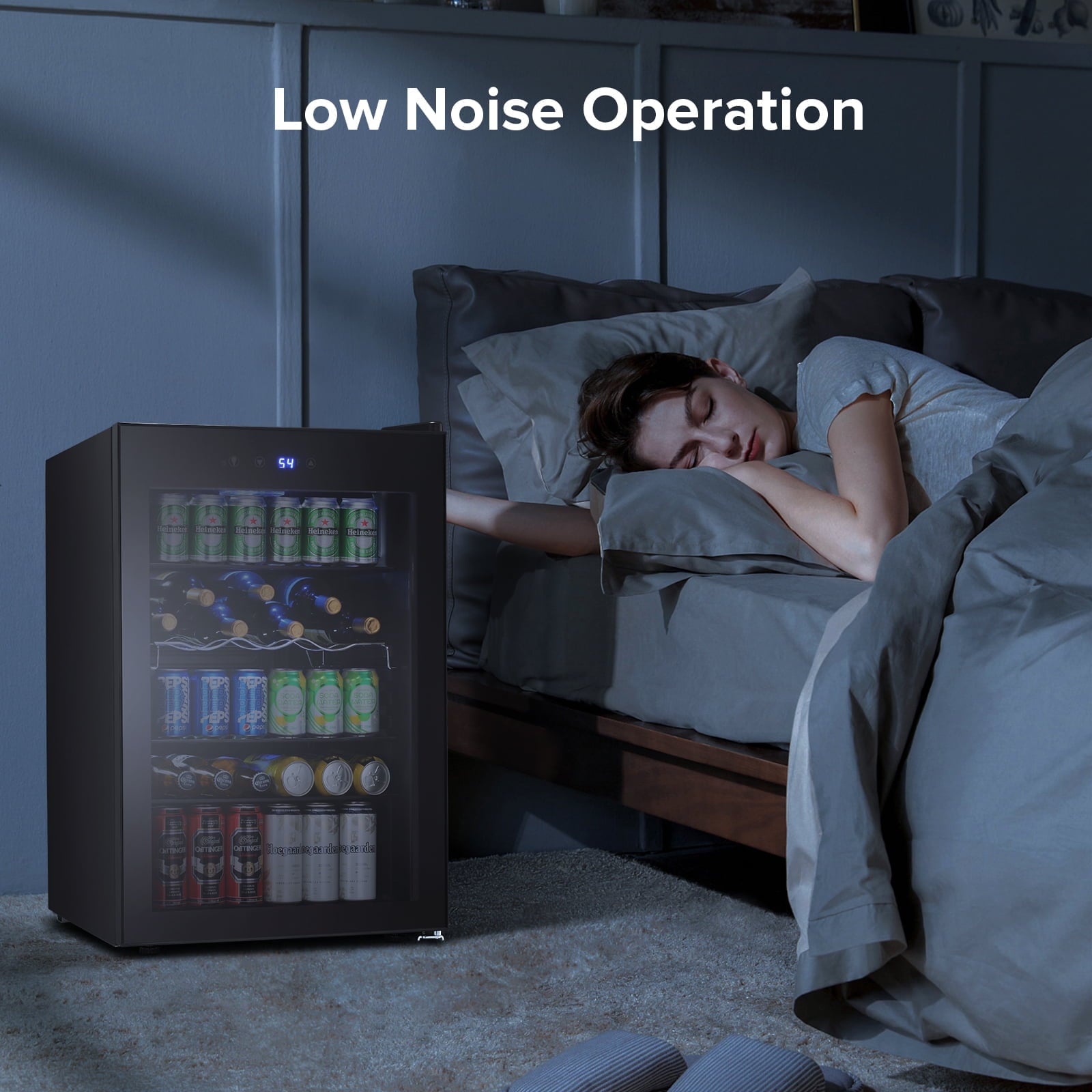 - 🌌[Efficient and quiet operation]: Built-in efficient compressor, fast and quiet refrigeration, running noise below 40 decibels, creating a quiet environment. Soft blue LED lamp design makes it easy to find your favorite drink even in dim environment.