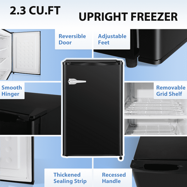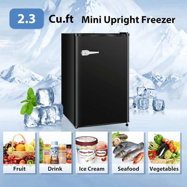 【COMPACT SIZE & LARGE CAPACITY】The freezer adopts a space-saving design with a size of 19.7"*20.9"*33.3", which is very suitable to be placed in the home, office, dormitory or apartment. While saving space, the freezer also has a large capacity of 2.3 Cu.ft which can meet your daily needs for storing food and beverages. It can greatly satisfy your demand for refrigeration in daily life.