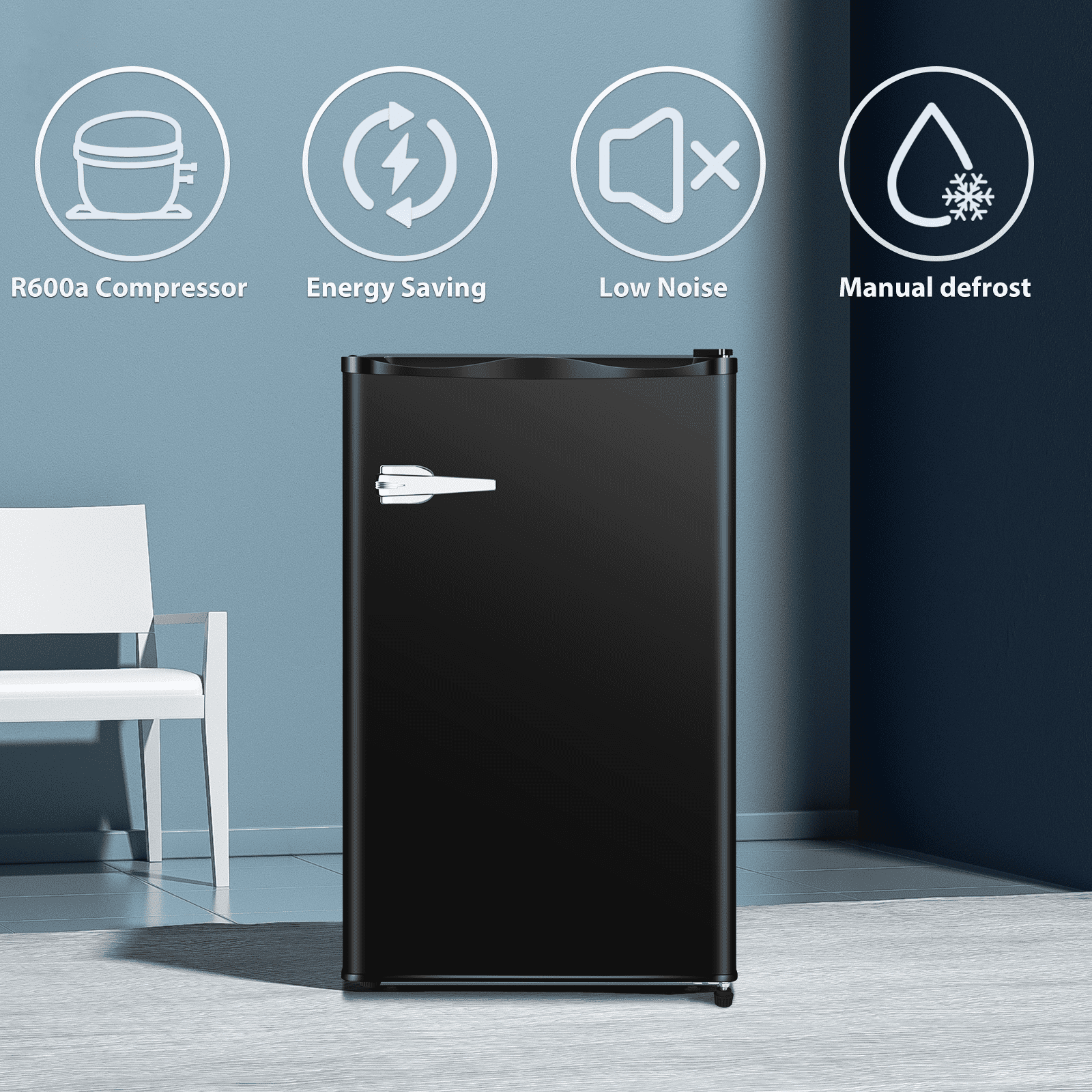 Auseo 2.3 Cu.ft Single Door Mini Freezer, Upright Compact Freezer with Retro Handle & Removable Shelf & Adjustable Temperature Control, Low Noise for Home/Office/Dorm/Apt-Black