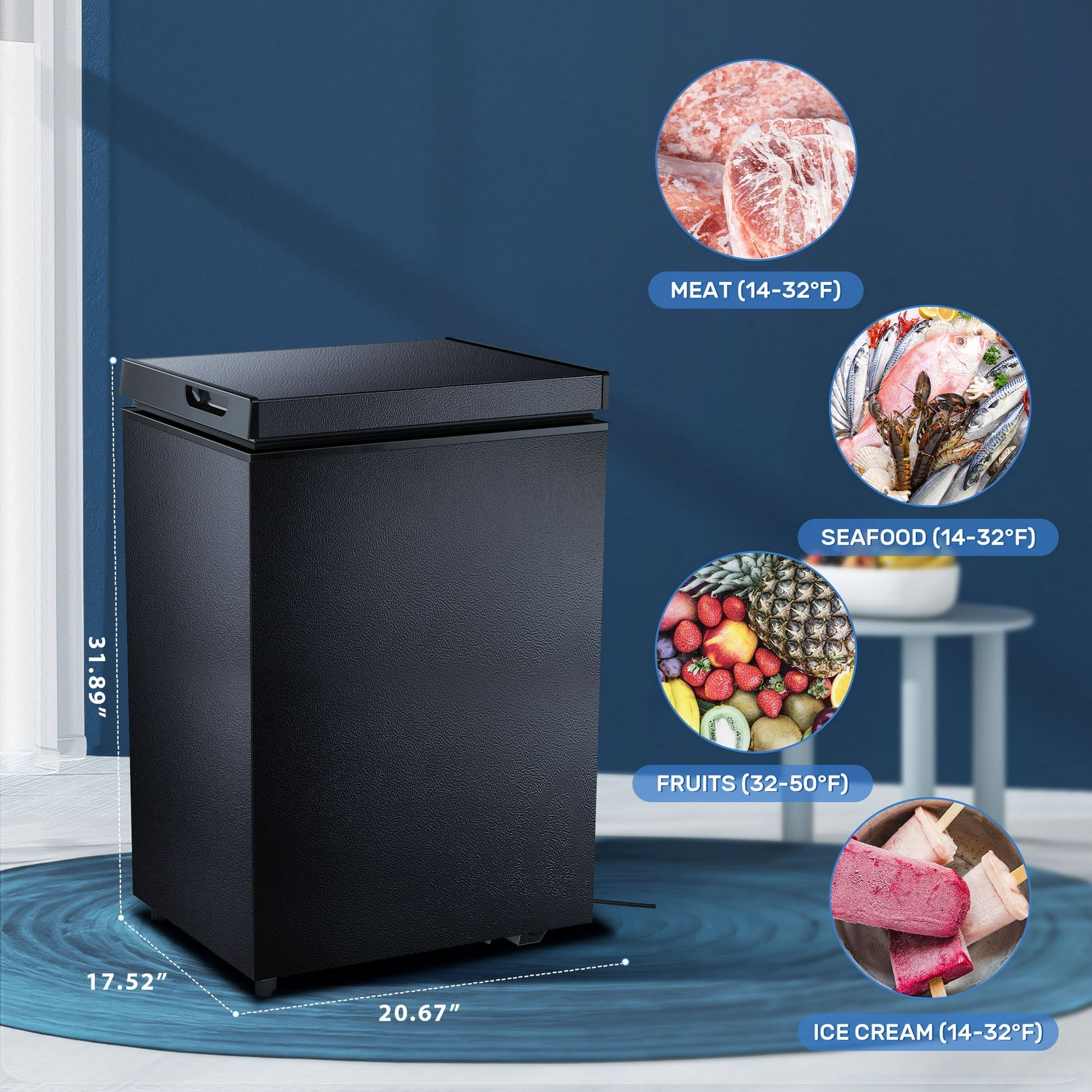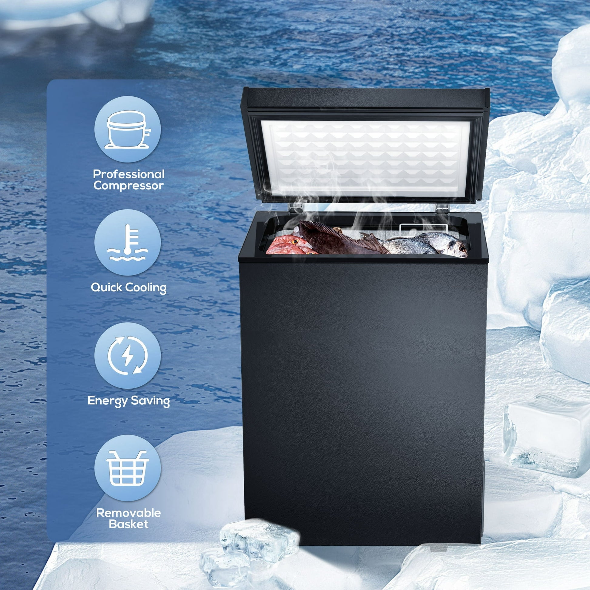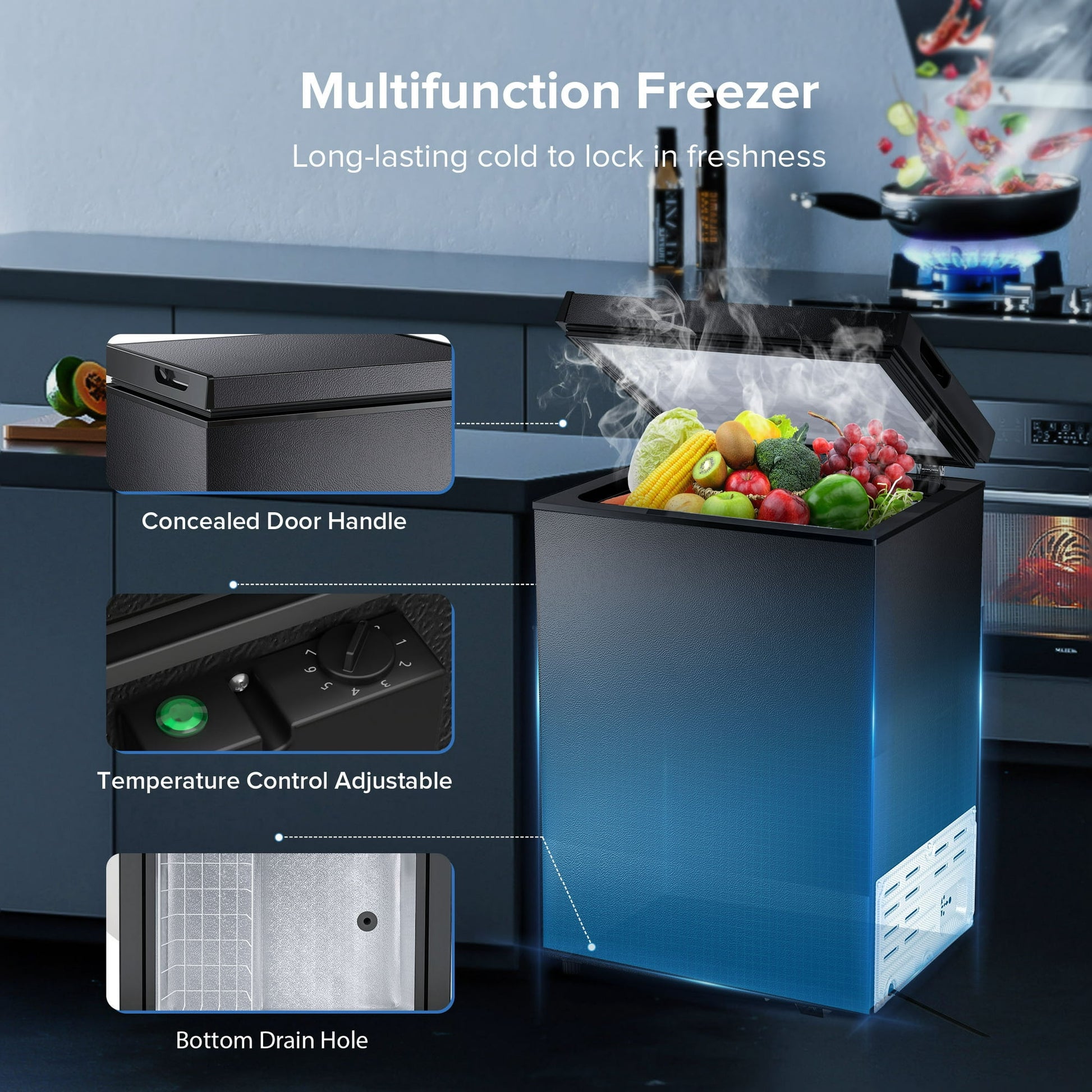 Auseo 2.8 Cubic Feet Chest Freezer Free Standing Top open Door Compact Freezer with Adjustable Temperature, Suitable for Home/Kitchen/Office-Black