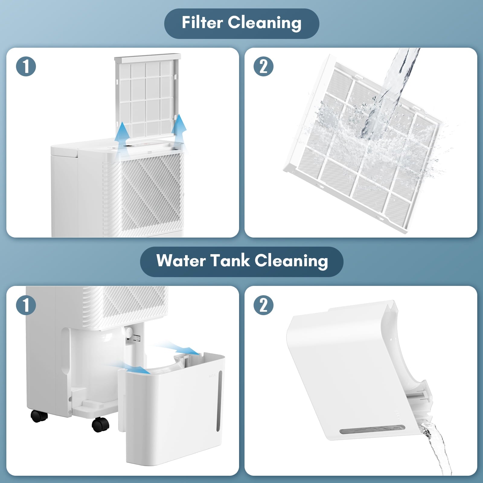 🌬️【Easy-to-Clean Washable Filter】- The filter of our portable dehumidifiers can be easily disassembled. Simply remove the filter mesh, use a vacuum cleaner to remove dust, and rinse the air filter under running water. This ensures that your dehumidifier maintains optimal performance and improves air quality in your space.