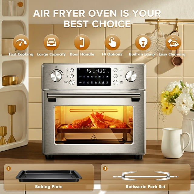 Auseo 26QT Multifunctional Stainless Steel Air Oven With Rotisserie Dehydrator, Healthy Cooking With Recipe, Built-in Timer, Thoughtful Light Button