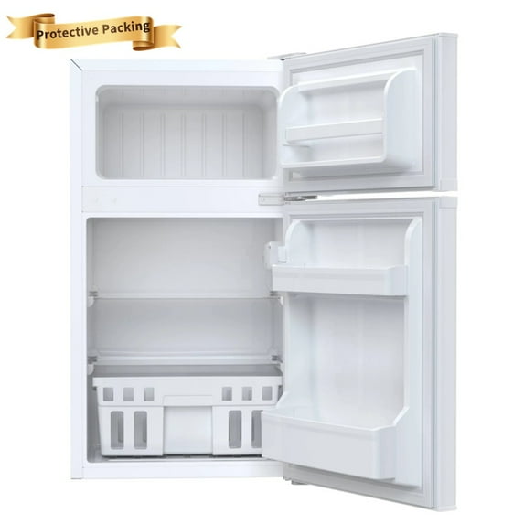 - Large capacity: 3.2 cu. Ft. Capacity, divided into two layers, expanding the storage space. The upper layer is a freezer, you can freeze some food, ice bags, ice cubes, ice cream, etc. The lower layer can put some fresh food, such as vegetables and fruits. The refrigerator is equipped with door bin design, whether it is a tall drink bottle or a shorter canned drink, you can place them on it, safe and solid