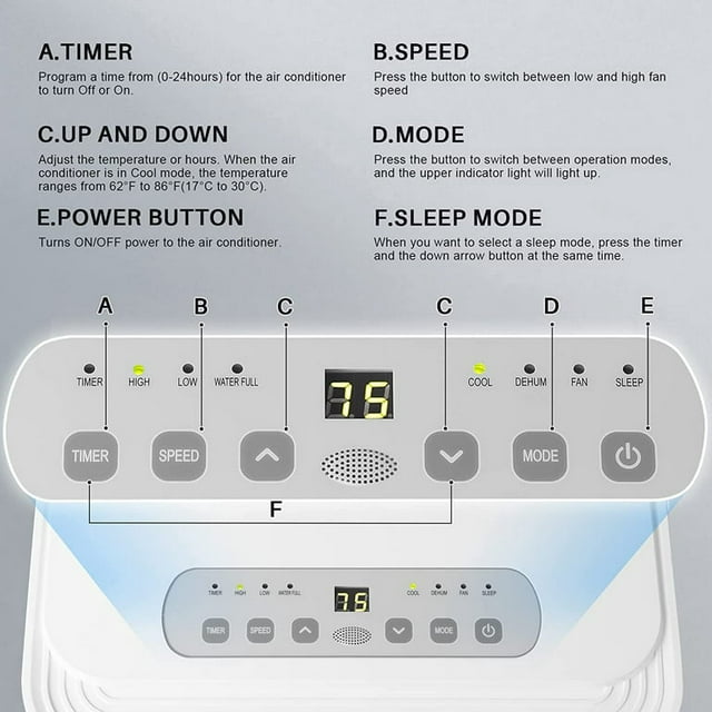 - 🧊【24-hour Timer & Sleep Mode】 The fan can be turned off at the time you set whether you fall asleep or forget to turn it off. Our portable air conditioner operates in low mode at no more than 51 decibels, which won't disturb your rest at night. And sleep mode makes you more quiet when resting.