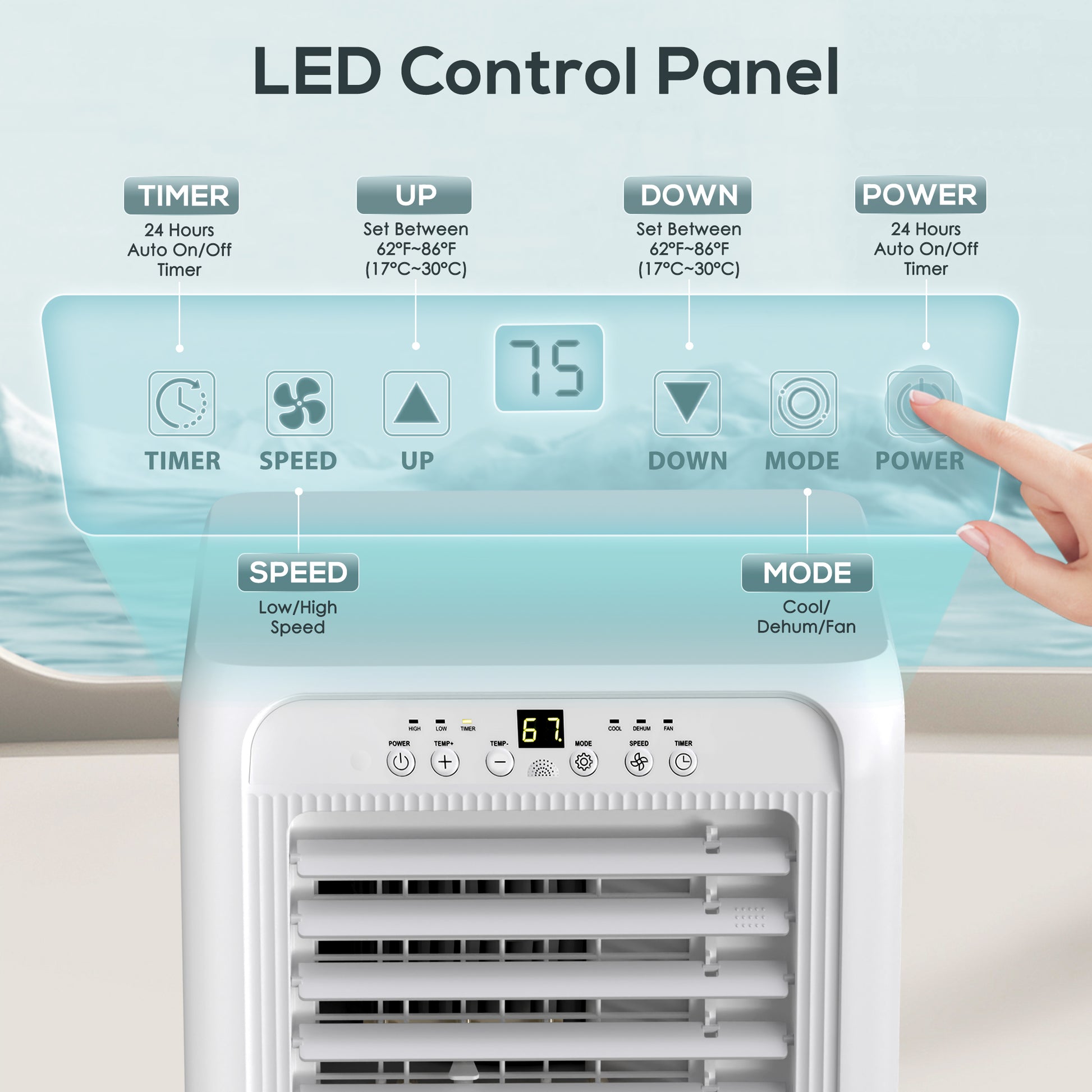 Auseo 5000BTU (8000 BTU ASHRAE) Portable Air Conditioner, Dehumidifier, Fan, 3 in 1 AC with 24-Hour Timer