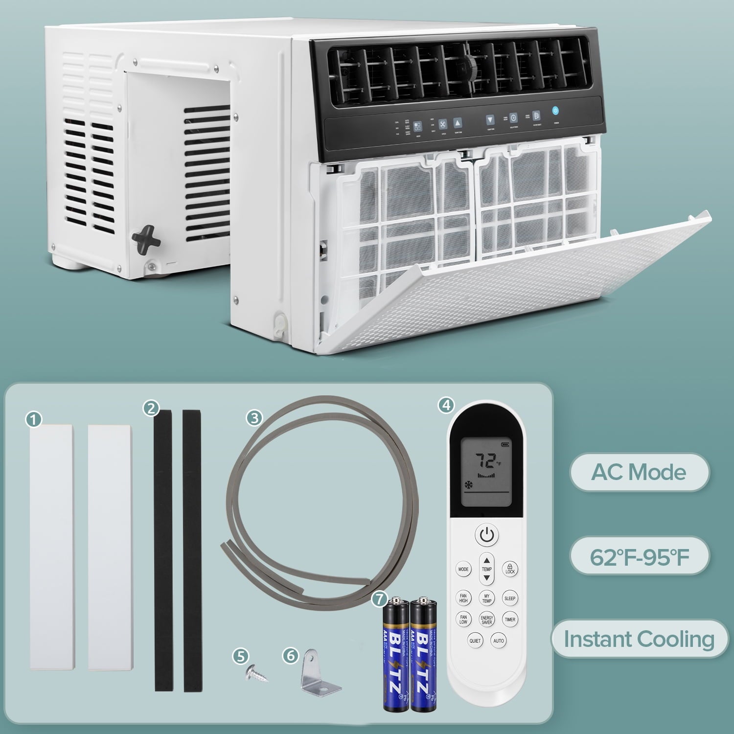 Auseo 6,300 BTU (10,000 BTU ASHRAE) Window Air Conditioner, Cools 450 Sq.ft., 6 Modes, 24H Timer, Energy-Saving & Low Noise, Remote Control for Home/Office/Dorm/Apt-White