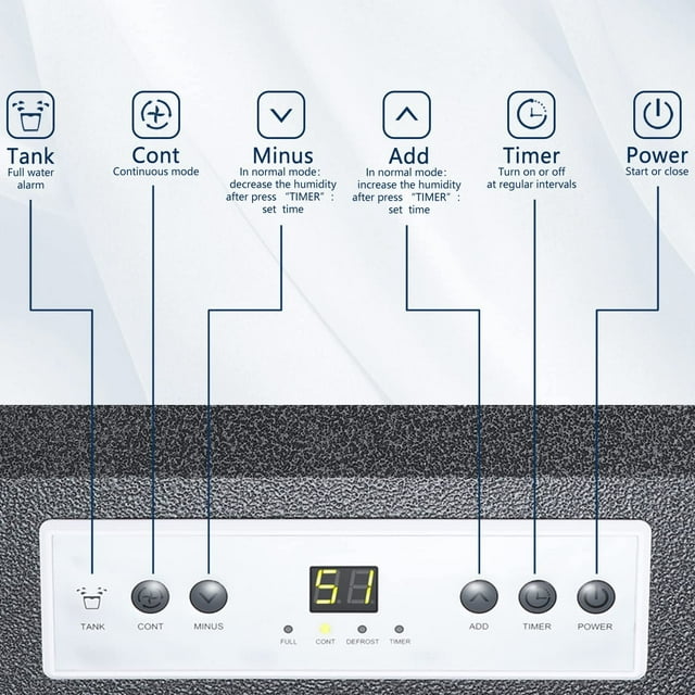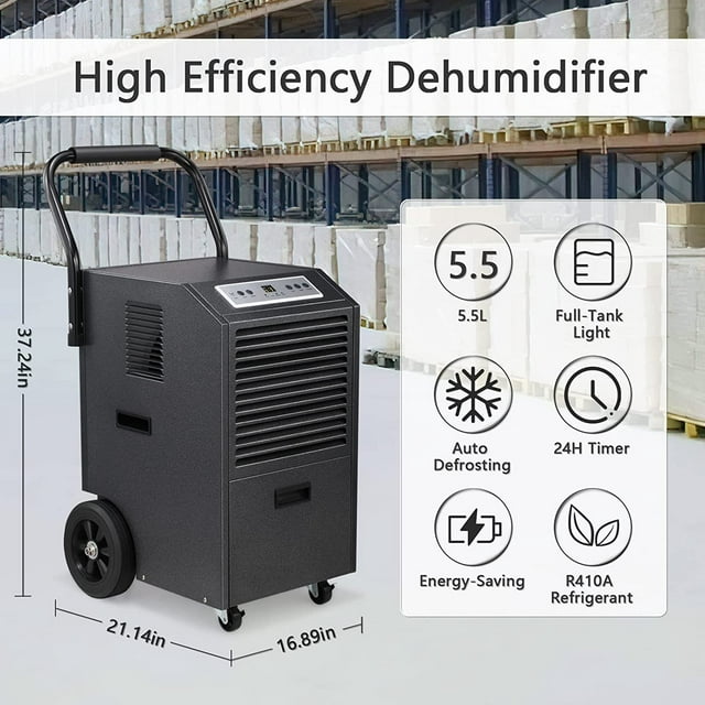 Auseo 110 Pints/Day Commercial Dehumidifier Thank you for selecting Auseo dehumidifier, This portable dehumidifier can be used in the bathroom, living room, bedroom, closet and kitchen, meeting the daily needs for dehumidifying. here is the features of our commercial dehumidifier: High performance commercial dehumidifier with pump can remove up to 110 pints of moisture per day. Suitable for large spaces like large basement, large room. 1.3 gallon water tank is large enough for long time using. Easy to use and read with the control panel and digital display. Removable and washable air filter, easy to clean. Built in 24-hour timer and defrost mode. Easy mobility with the foam handle, built-in handles and 4 rolling wheels. Auto shut off when the water tank is full.