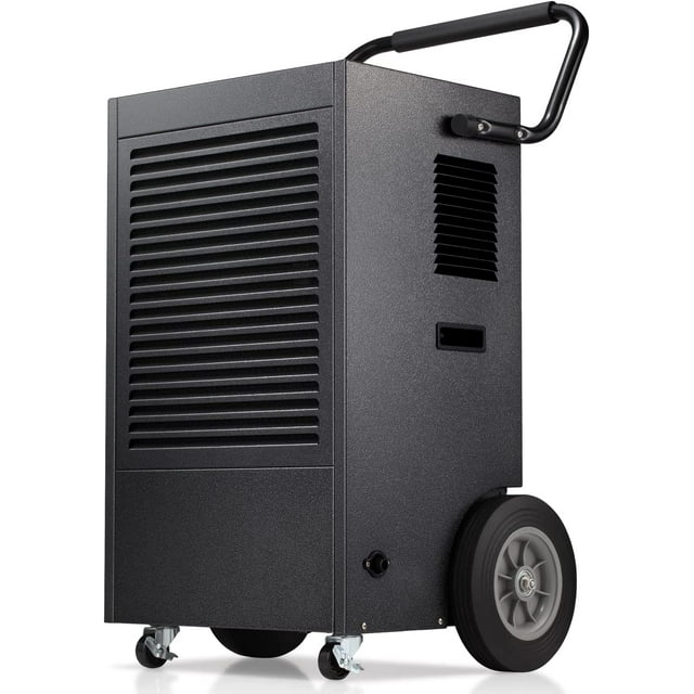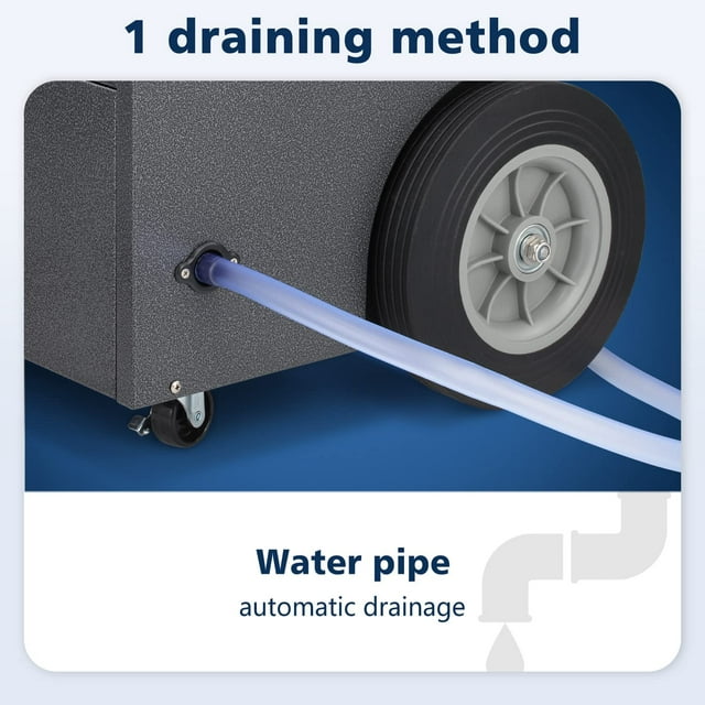 - 【2 CONVENIENT DRAINAGE OPTIONS】- Simply attach the included 8.2 ft drain hose to this commercial-grade dehumidifier to drain the condensation automatically and continuously by gravity. This high-efficiency dehumidifier builds in a 1.3-gallon water reservoir allowing to use somewhere without floor drain. The large dehumidifier will auto OFF when the reservoir is full to prevent overflow.