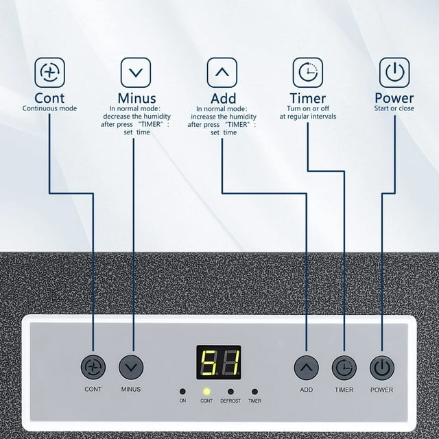 - 【ALL FUNCTIONS EQUIPPED AT ALL YOUR NEEDS】- Powerful compressor enables efficient dehumidification; Child lock protects children from unintentional touches; 24hr timer allows you to set auto turn-on & turn-off time; 360º wheels enable easy movement; Visible 1.3-gallon large water tank and drainage pipe provide flexible drainage options.