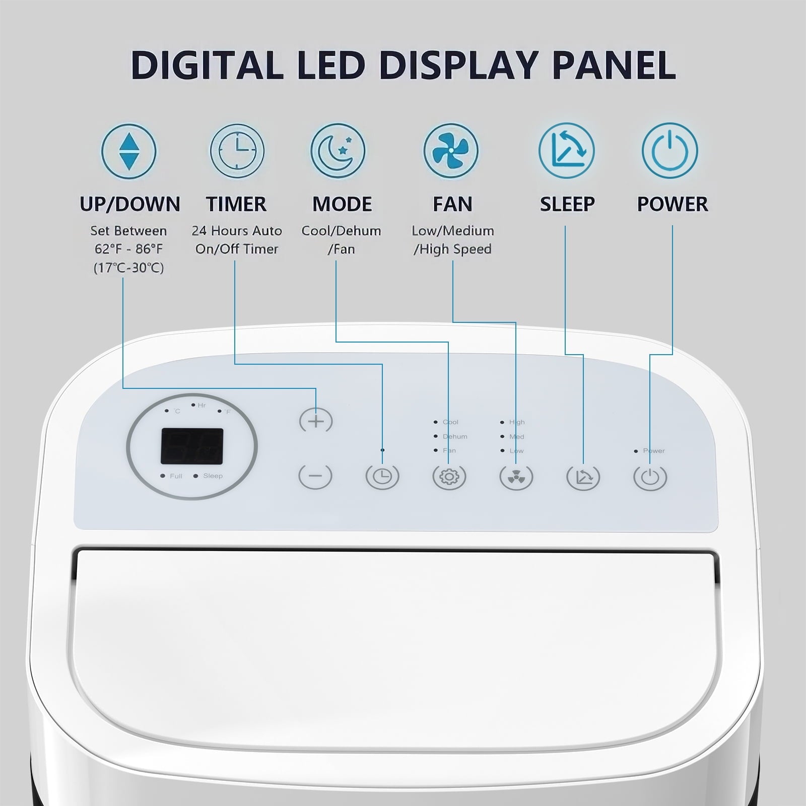 - 【SLEEP MODE & 24H TIMER】: For quieter and economical nighttime cooling, the air conditioner portable lowers the fan speed and raises the temperature slightly during the night. Timer control function up to 24 hours, set a timer to turn on or off the unit automatically on your schedule to keep the room air conditioner working efficiently. You can enjoy better sleep every summer night.