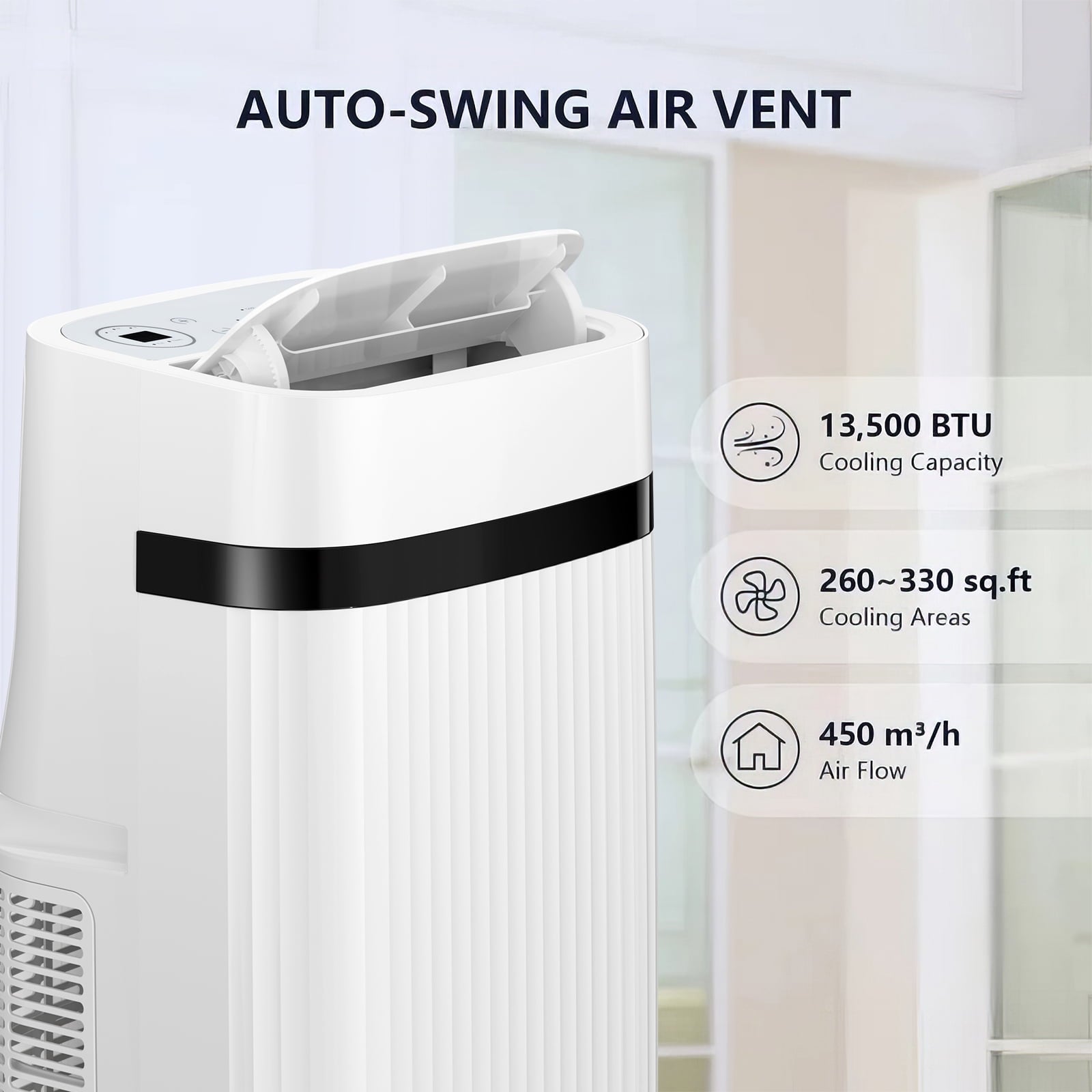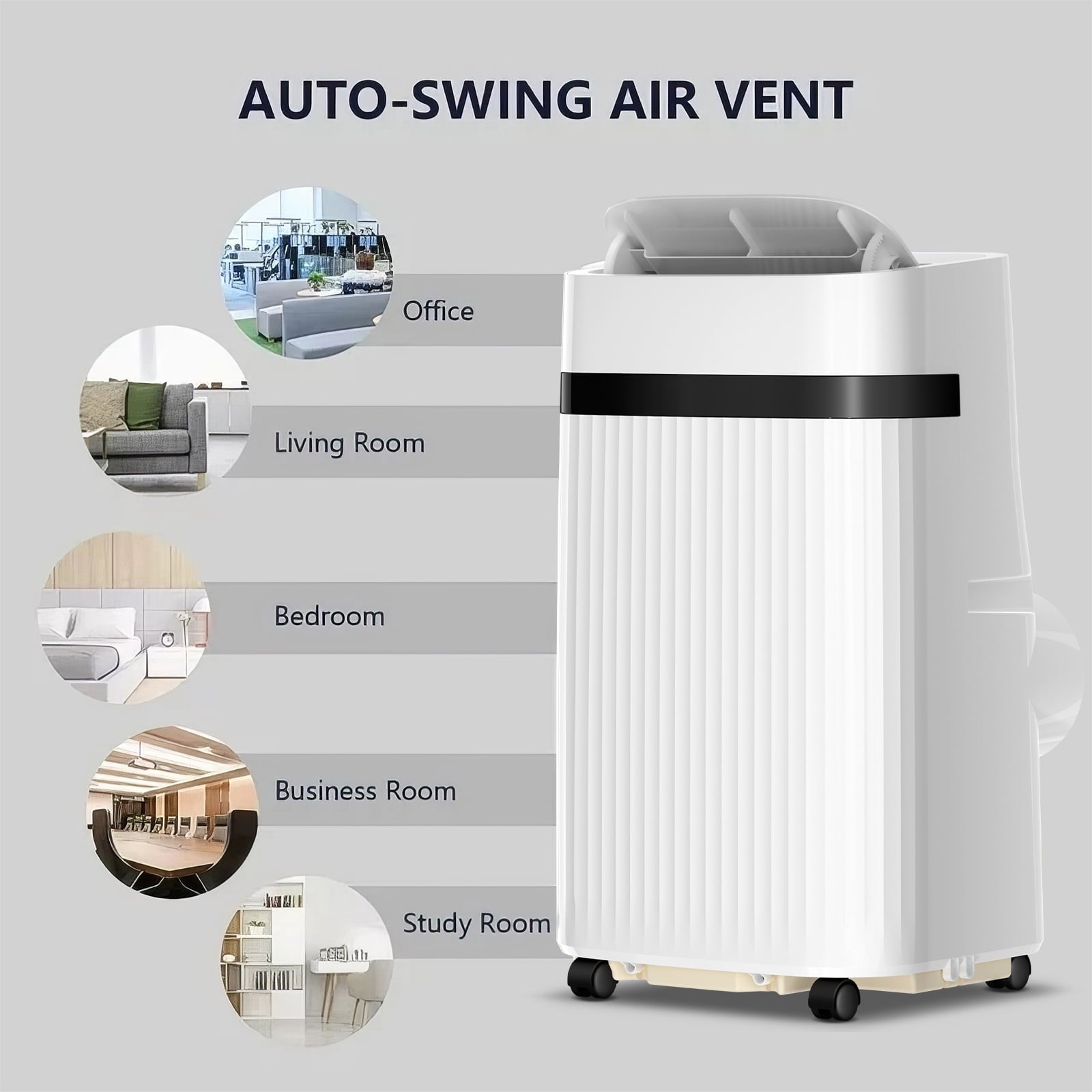 - 【3-IN-1 AC & AUTO SWING FUNCTION】: This portable ac air conditioner includes 3 modes, dehumidifier and fan, which can meet your different demands. Dehumidifying capacity: 100 Pints per day; 2 fan speeds. In the fan mode, the fan blades automatically swing up and down for maximum air circulation.