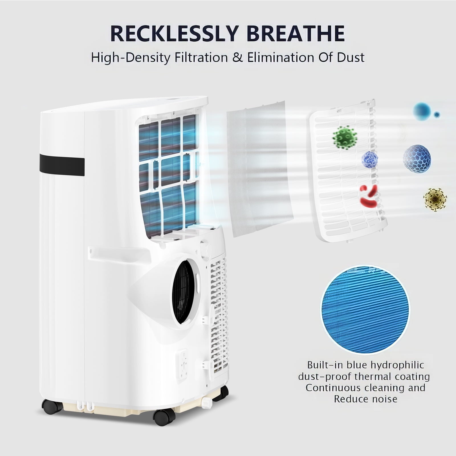 - 【EASY CONTROL & SIMPLE CLEAN】:Our portable ac is equipped with a remote control and easy-to-read LED Panel can conveniently turn on/off the AC unit and switch any mode you want from everywhere in the room. There is also a removable and reusable air to provide clean cool air. We recommend that you clean the filter once a week to prolong the life and performance of the unit.