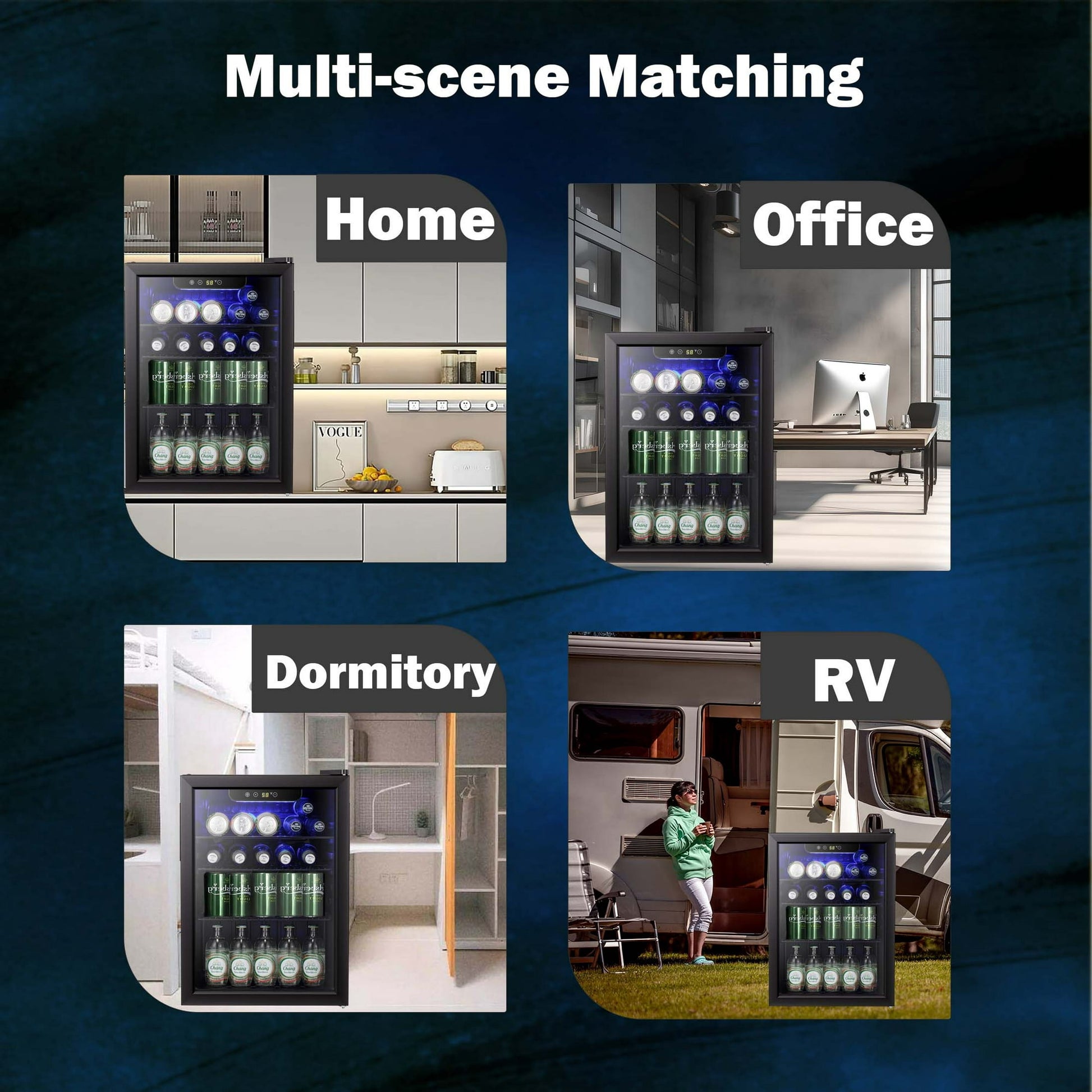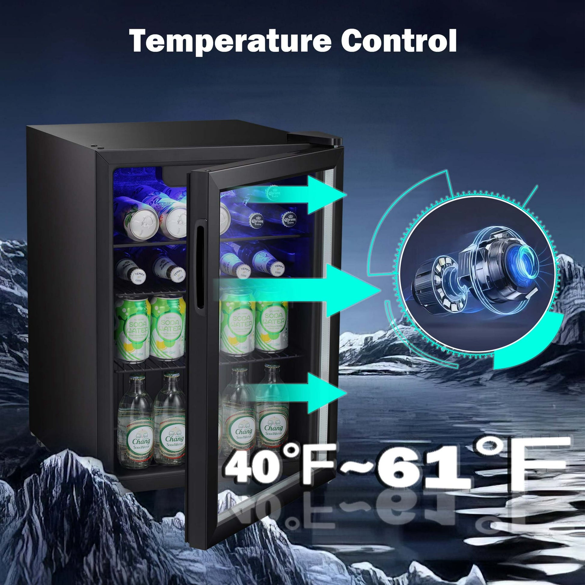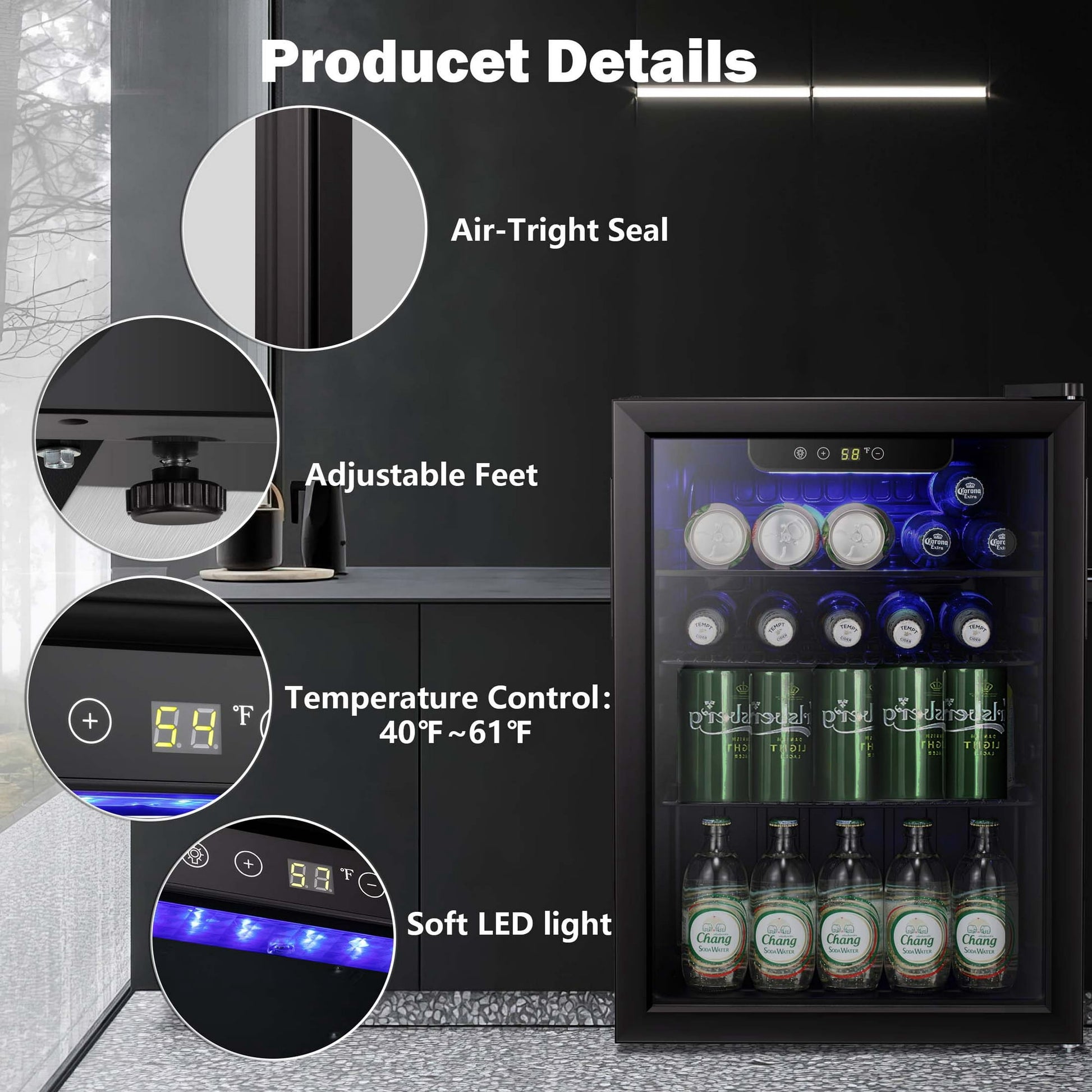 Auseo 85 Can Wine and Beverage Refrigerator Cooler, Mini Compact Fridge with Glass Door,for Home/Office/Dorm, Black