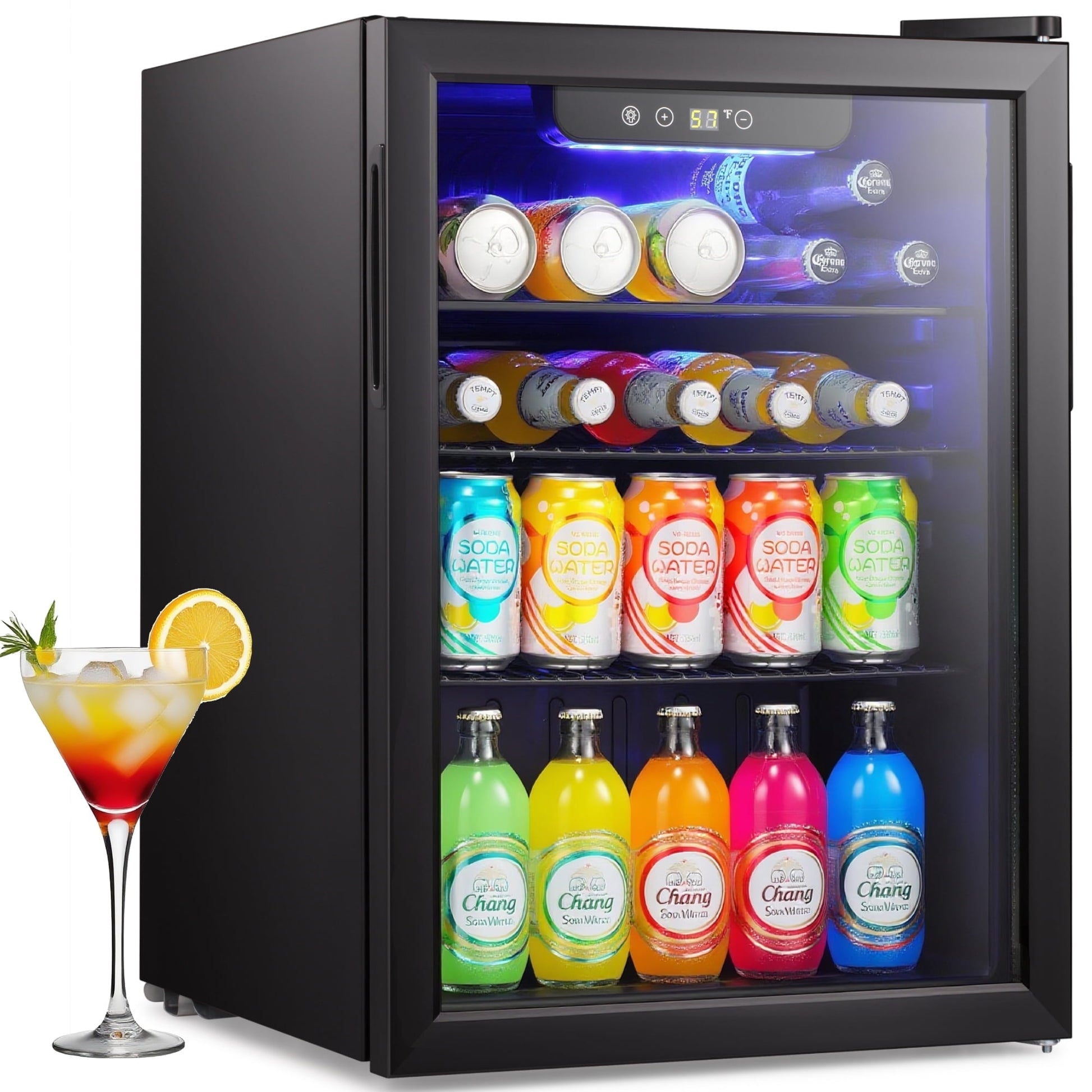 100-Can Beverage Refrigerator with Double Glass Door, Energy Efficient Wine Cooler Mini Fridge, Air Cooled Frost Free for Home/Office/Bar