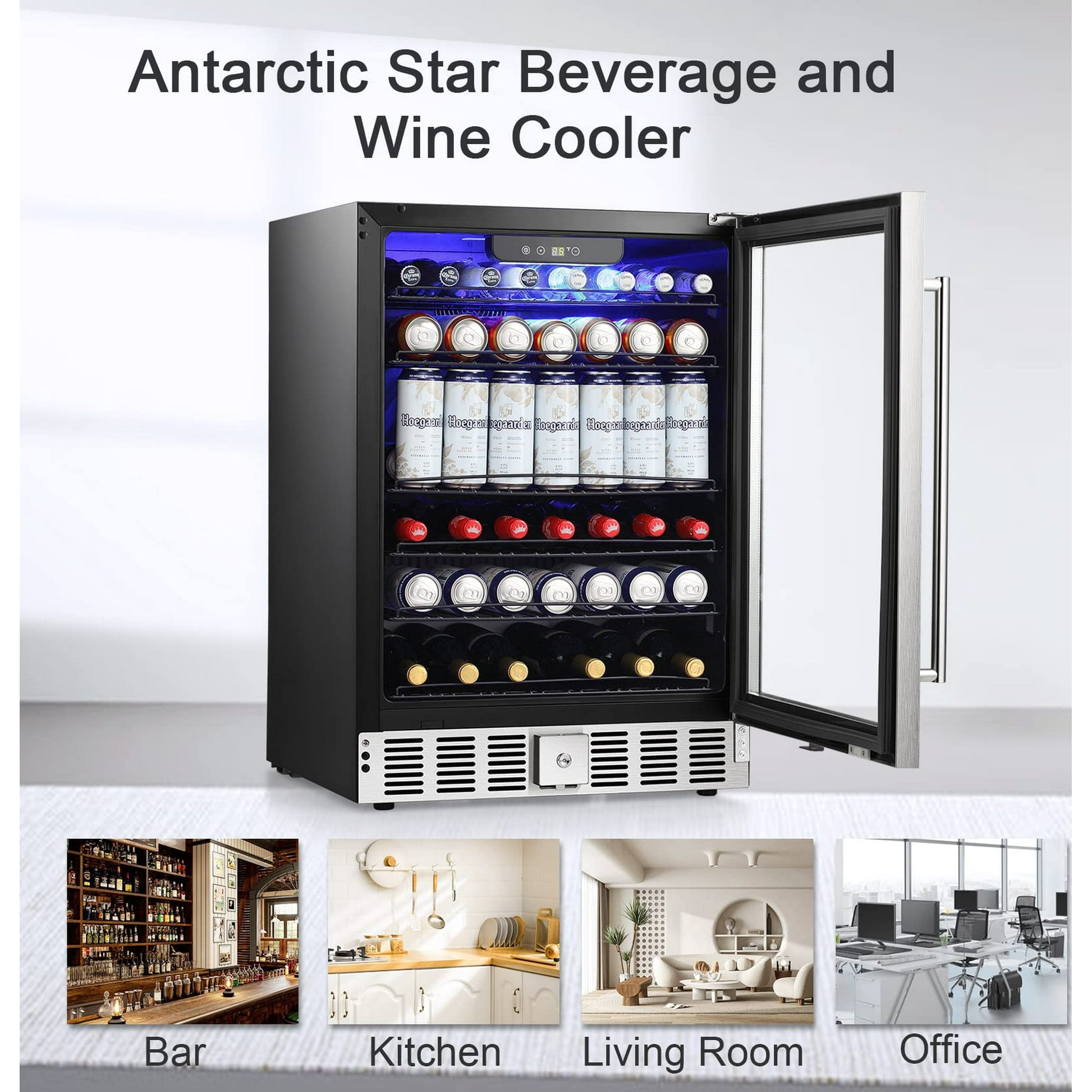 Auseo 5.1Cu.ft 24inch Beverage Refrigerator Cooler, Wine or Champagne Cooler with a Lock LED Light, Temperature Control, for Home/Office