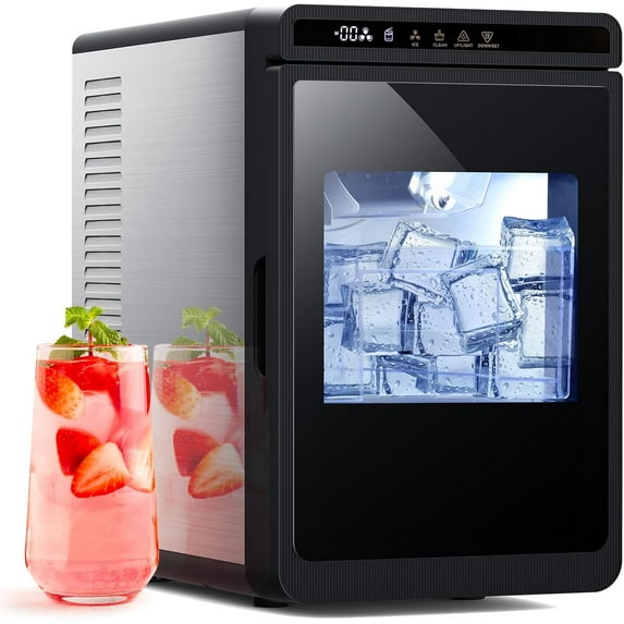 - Slow-melting Crystal Clear Large Ice Cubes: The stainless steel Cubic ice maker countertop uses CrystalFlux technology. It can produce 3 large, 1.6" Flawlessly Transparent Ice Cubes per 35 mins( In Crystal mode), the ice cubes have very few bubbles and are not easy to melt. Bring high-end bar sophistication home and keep your drinks perfectly chilled without dilution