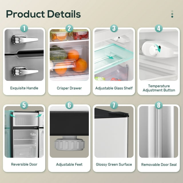 - Energy-Saving & Low-Noise: Using R600 a high-efficiency and low-energy consumption compressor, it can cool food quickly with lower energy. Energy efficient and LED light illuminates the interior. In addition, noise below 40Db, promise a sweet dream.