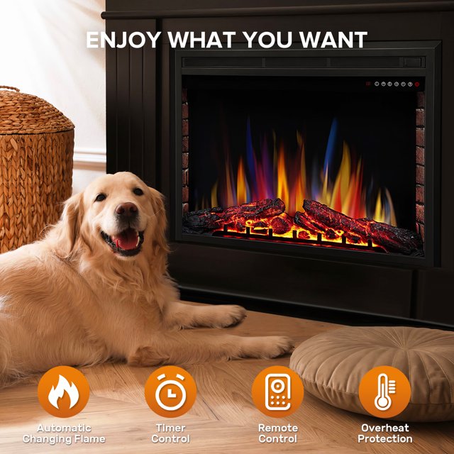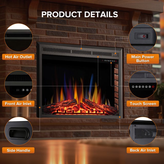 Auseo Electric Fireplace, 36inch Insert Electric Heater with Touch Screen, Colorful Flame & Timer Control, 750W-1500W and Classic (Black)
