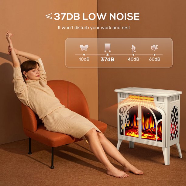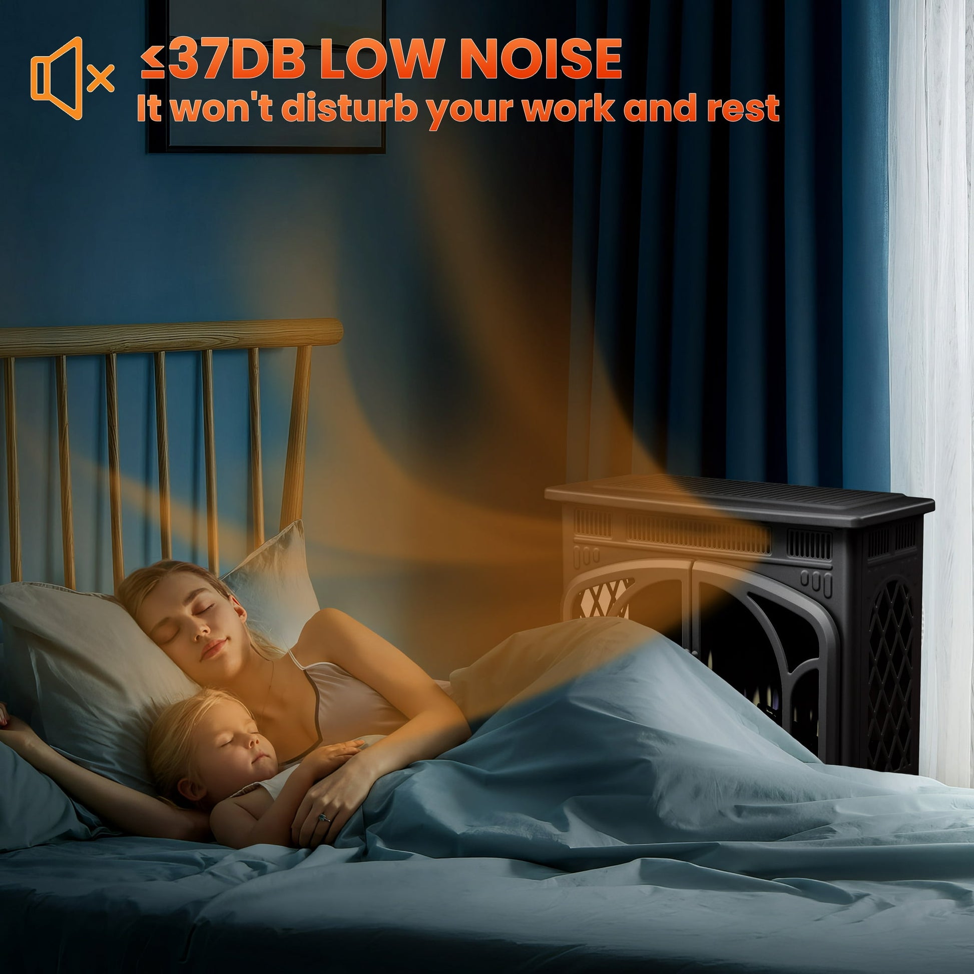 【Overheating Protection】-This fireplace is equipped with infrared Shi Ying heat, which helps to keep the natural humidity in the air, thus generating comfortable warmth without drying the room air. The overheating safety device will make the heater safer and more reliable. The air outlet is designed at the bottom of the product, which can effectively avoid overheating and high temperature hazards of the fuselage, so you can use it with confidence.