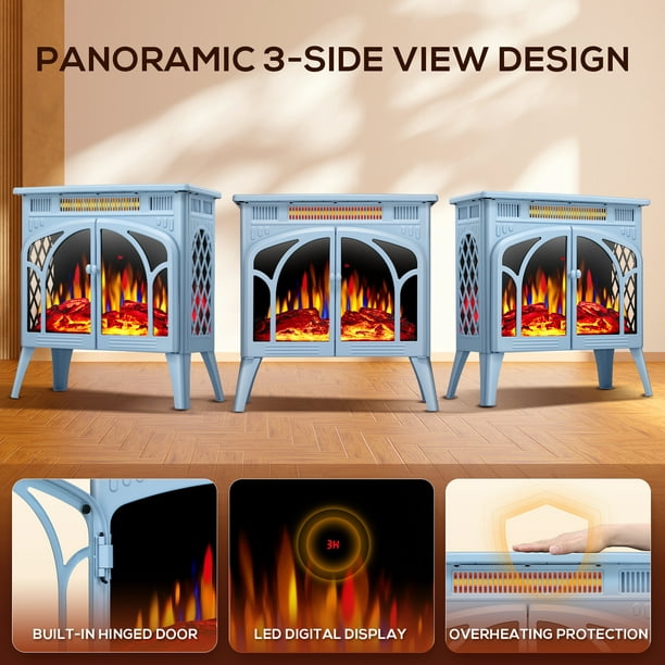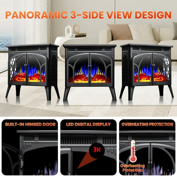 【Realistic Flame Vision】-Gorgeous and real beating flame and burning log design create the effect of realistic flame in the fireplace, as if you were in every scene. Transparent glass on three sides provides 180-degree observation, and you can enjoy the beautiful flame effect from any angle, which will become a highlight and ornament of your room.