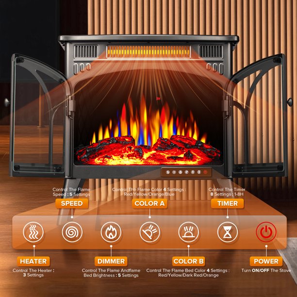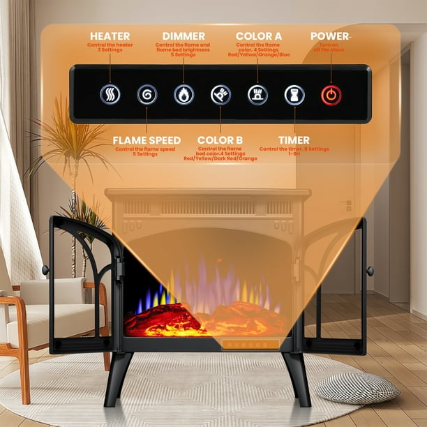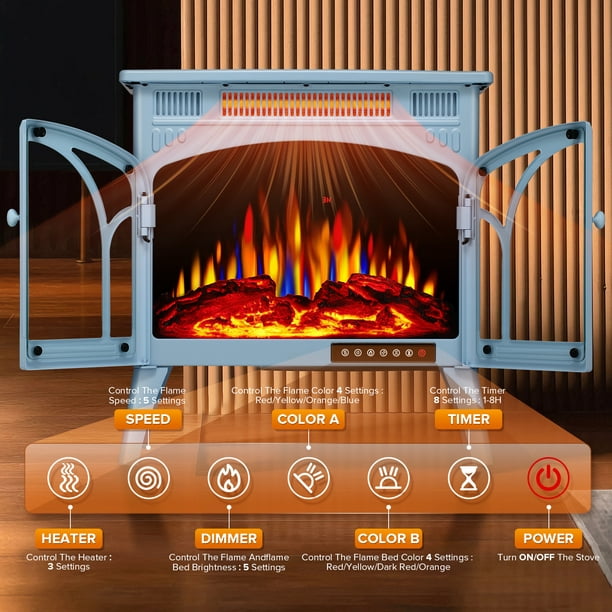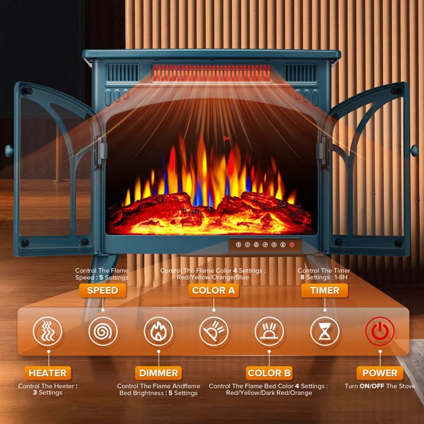 【Flame Color & Flame Speed】-4 kinds of flame colors and log colors, and 5 kinds of flame brightness can meet your different needs in different scenes. In addition, the flame speed can also be adjusted and switched according to your situation. When you study, the flame will jump slowly, and when you hold a party, the flame will jump quickly. When you just want to lie on the sofa, it can also be remotely controlled.