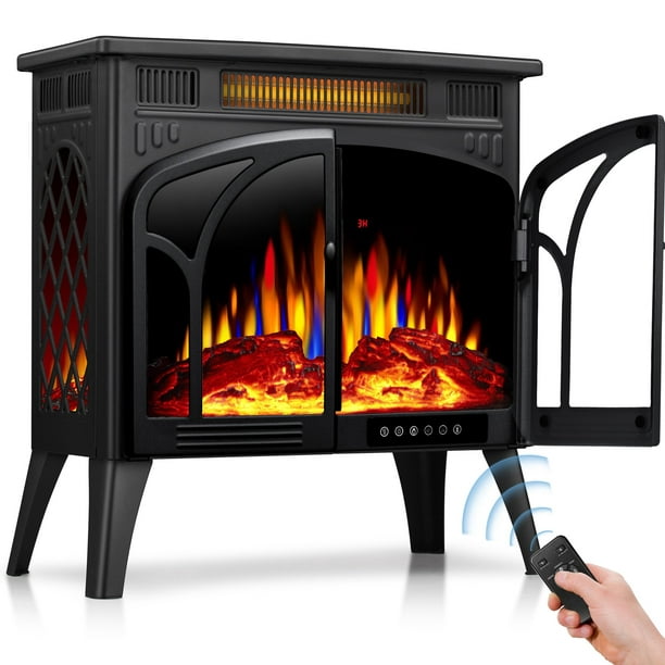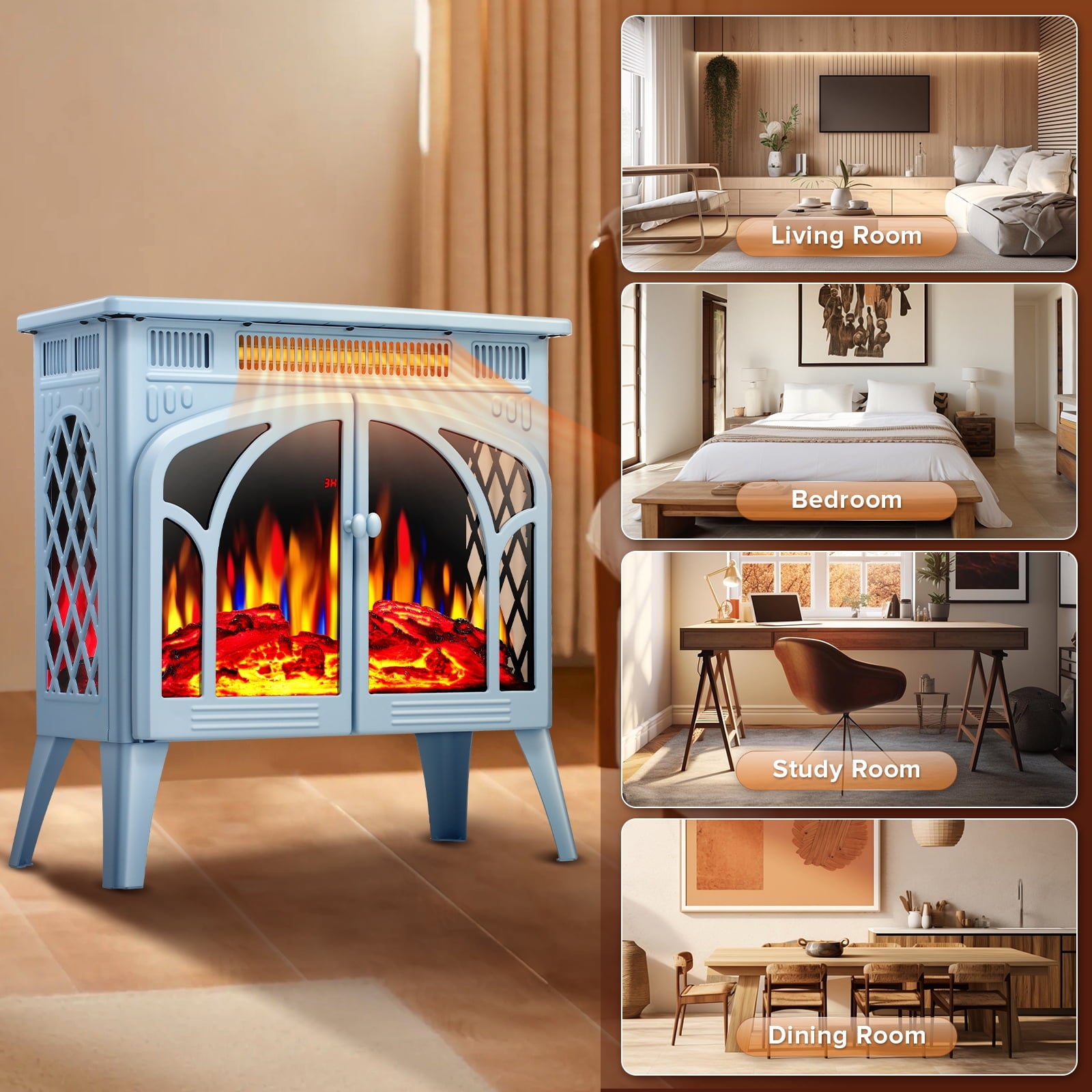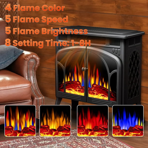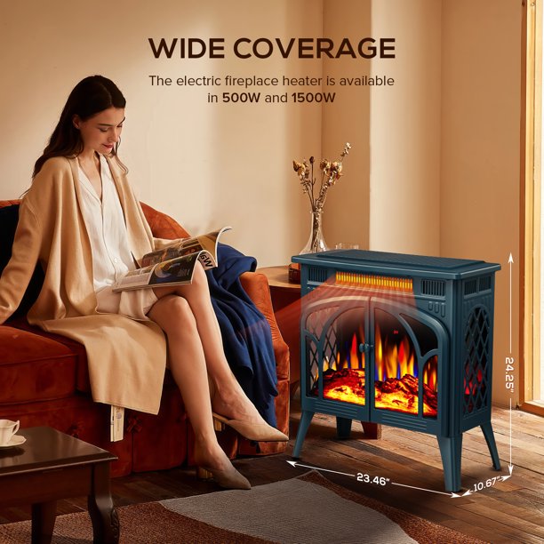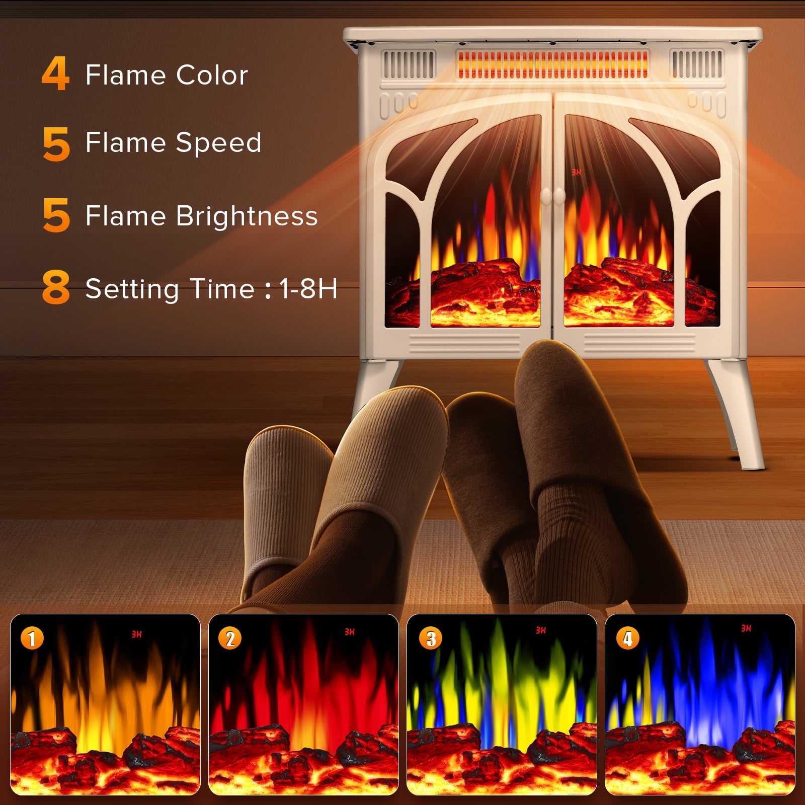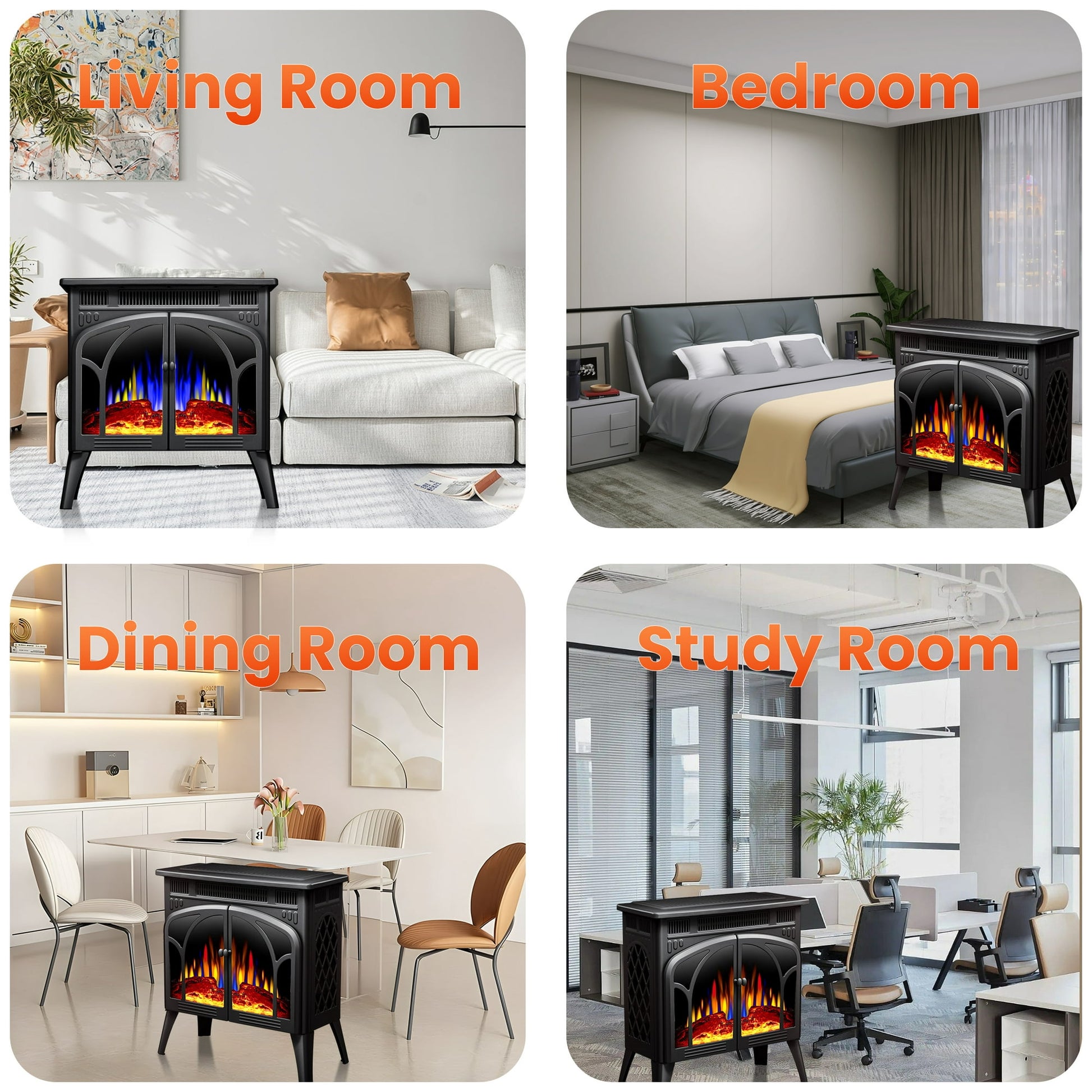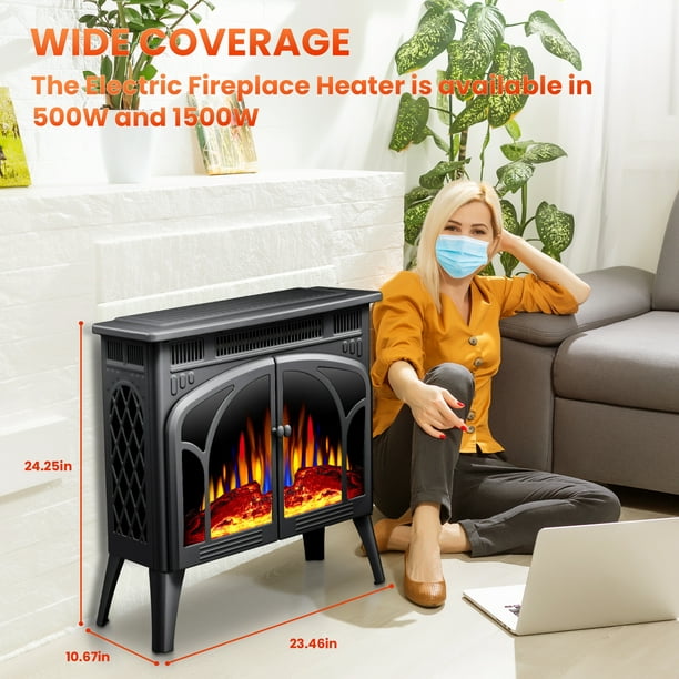 Auseo Electric Fireplace Heater 25’’ with 3D Realistic Flame Effect, Freestanding Fireplace with Remote Control, Timer, Different Flame Color,2 Heating Modes 500W/1500W