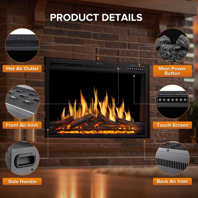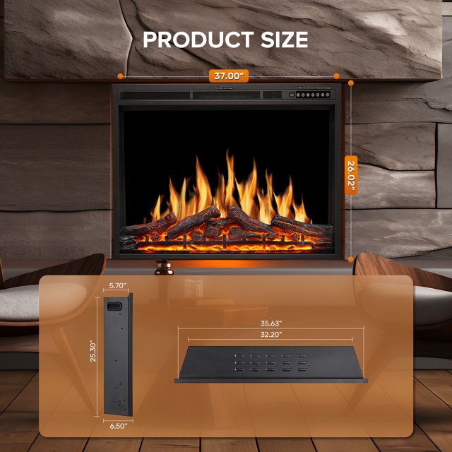 - Dimensions: 37" x 6.5" x 26.02". Freestanding & Recessed Fireplace Insert. Easy to be installed and ideal for all kinds of occasions such as home, office, or anywhere heat and ambiance is needed. Uses 120V.