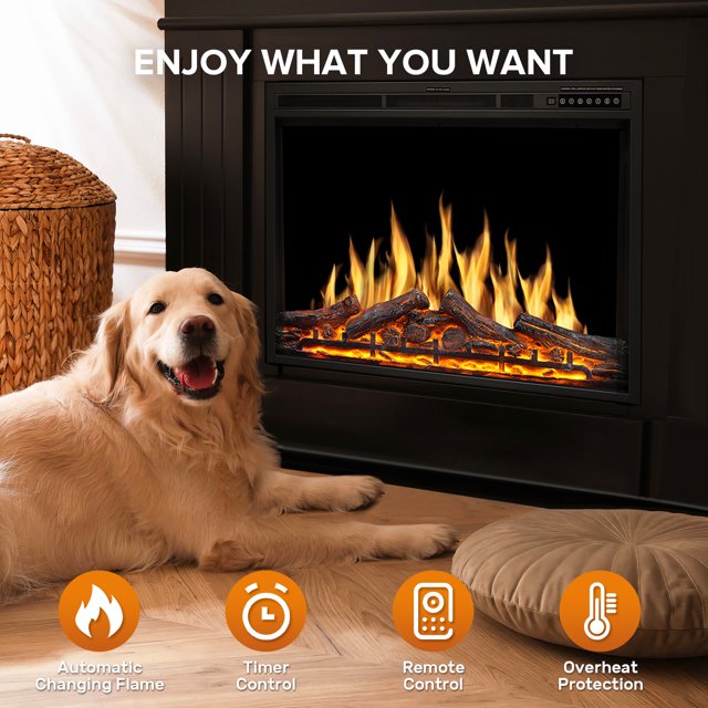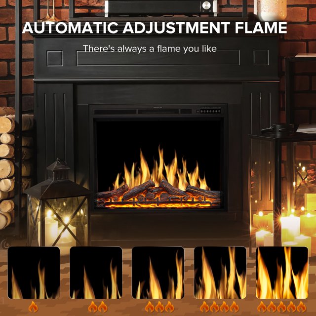 Auseo Electric Fireplace, Infrared Electric Fireplace Insert, 750W/1500W, Black, Remote (37'')
