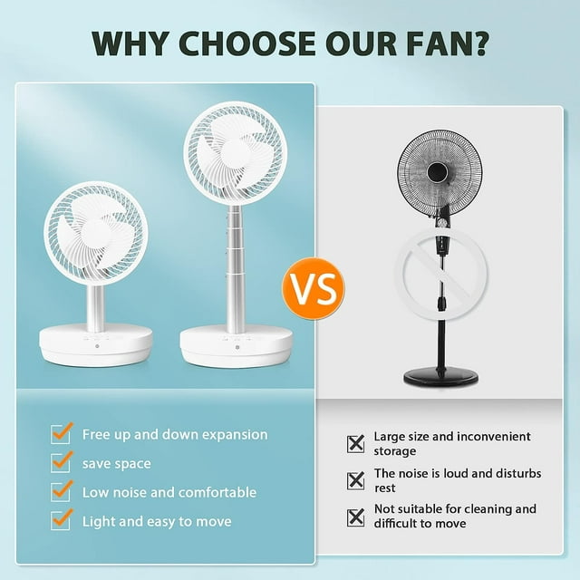 - Portable design: The Auseo Portable Foldable Pedestal Fan's portable design is incredibly practical, allowing you to enjoy a cool breeze anytime, anywhere. Plus, the folding design makes it easy to store when not in use, taking up minimal space.