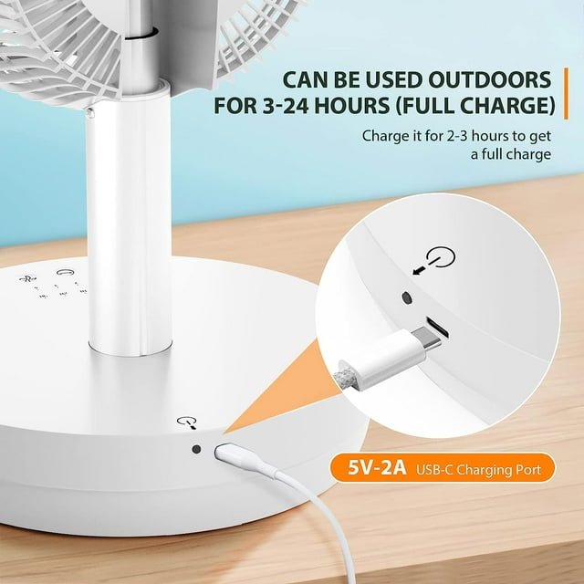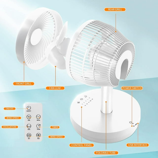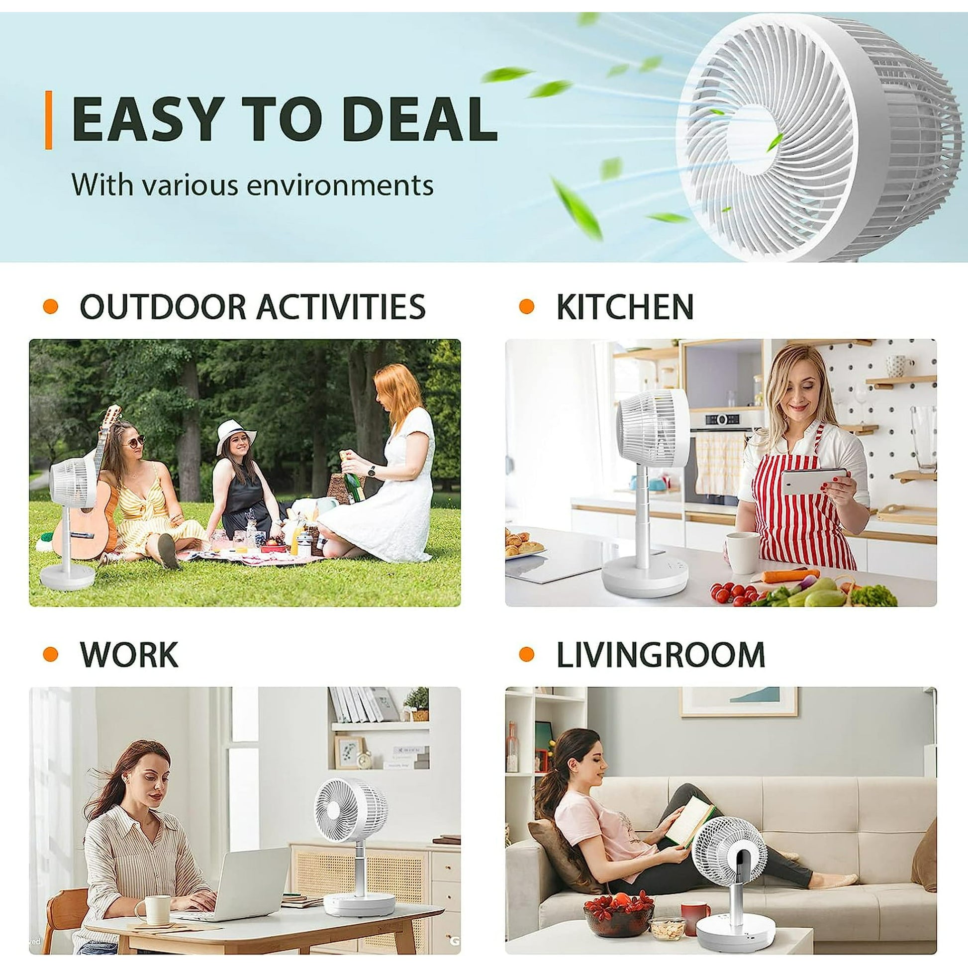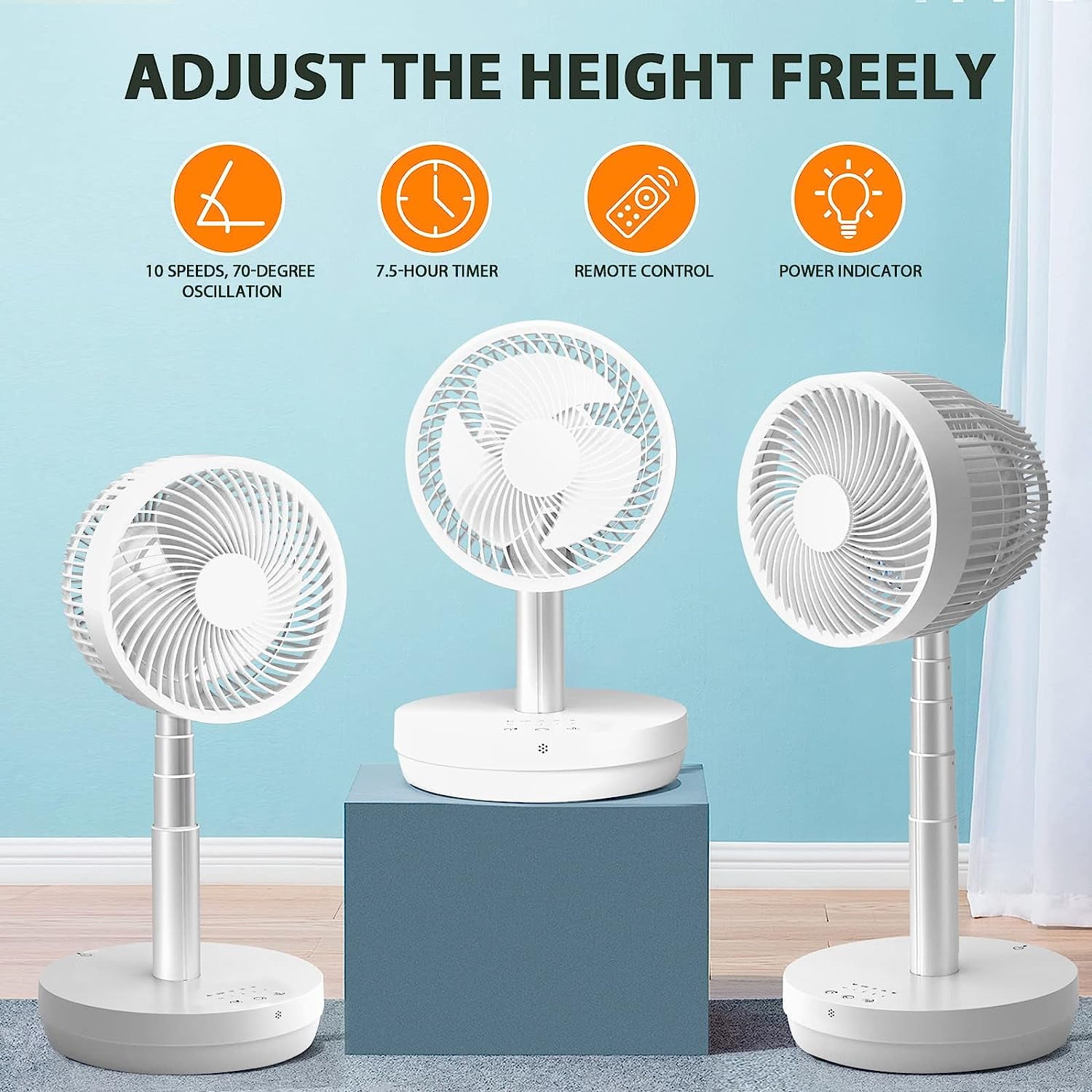 Auseo Foldable Fan, Oscillating Fan, 10 Speeds, Remote Control, Rechargeable Portable Table Fan, for Home\Camping\Office, White
