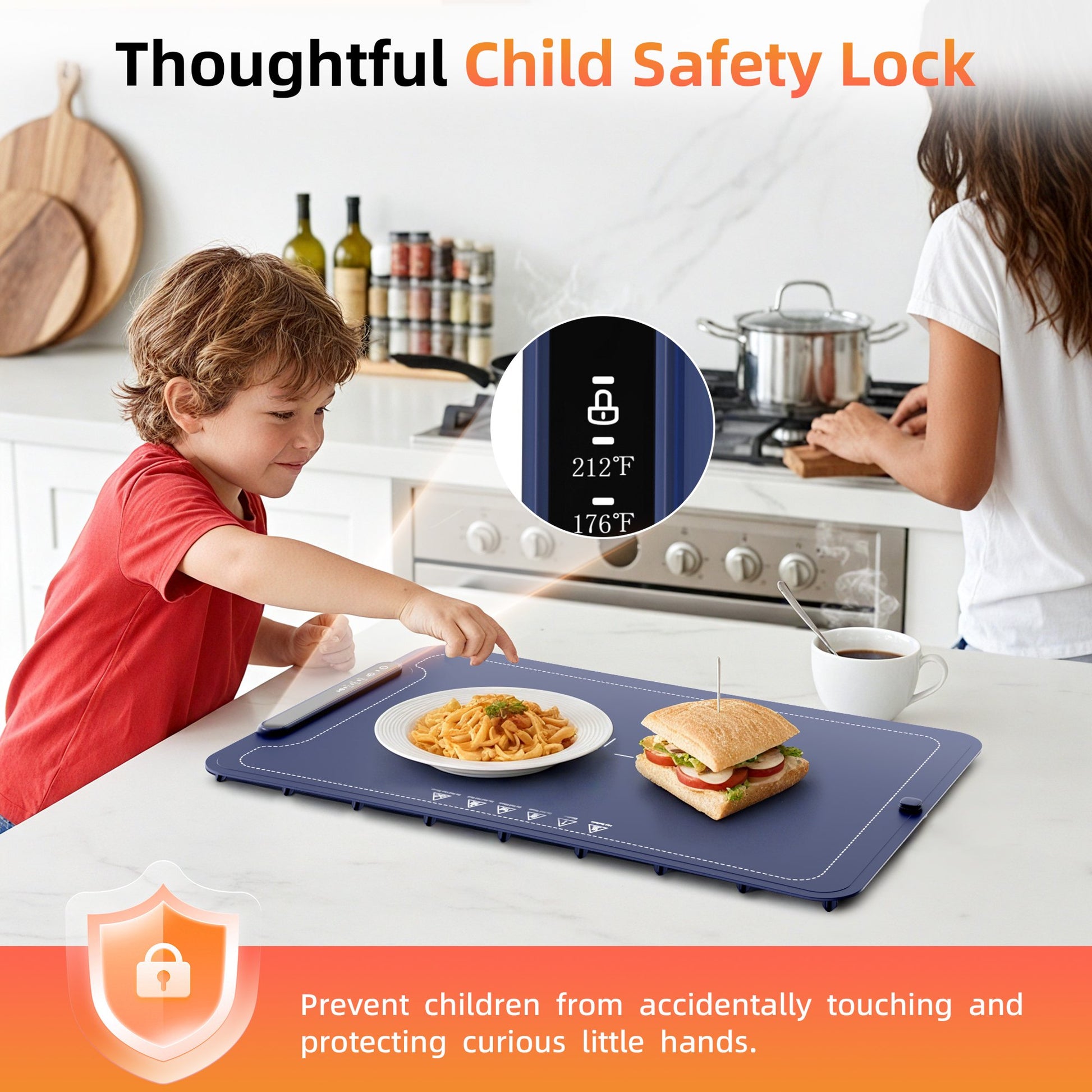 - 【Child Lock】Our warming plate is designed with more thoughtful details, including a considerate safety lock. This prevents accidental touches by children, ensuring the device operates safely when children are around.