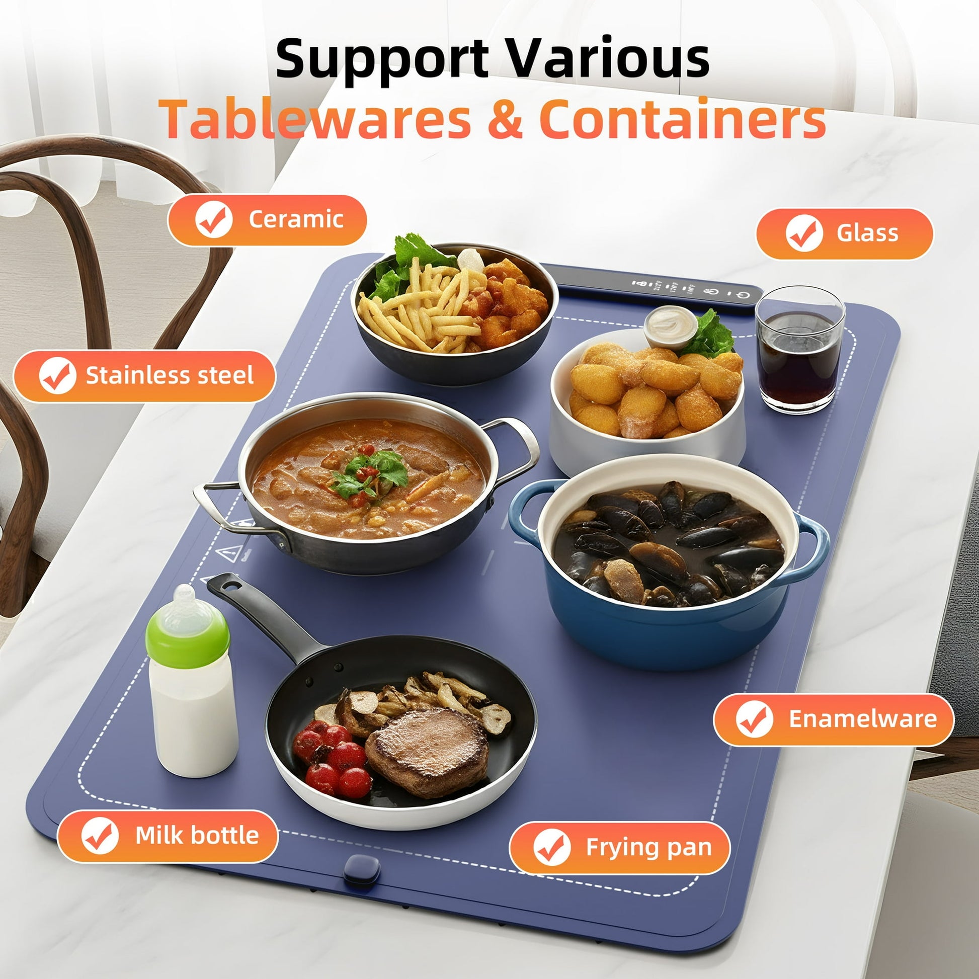 - 【Widely Compatible & Suitable for Various Occasions】Our electric heating tray adopts a universal design, compatible with tableware of all materials as long as they are high-temperature resistant. This food warmer is also a multi-functional household helper, easily handling mask heating, dough proofing, and food thawing. Suitable for home use in all seasons, it has a wide range of applications—whether it's family dinners, gatherings, events, parties, buffets, or trips, it can maintain the ideal temperature for food.