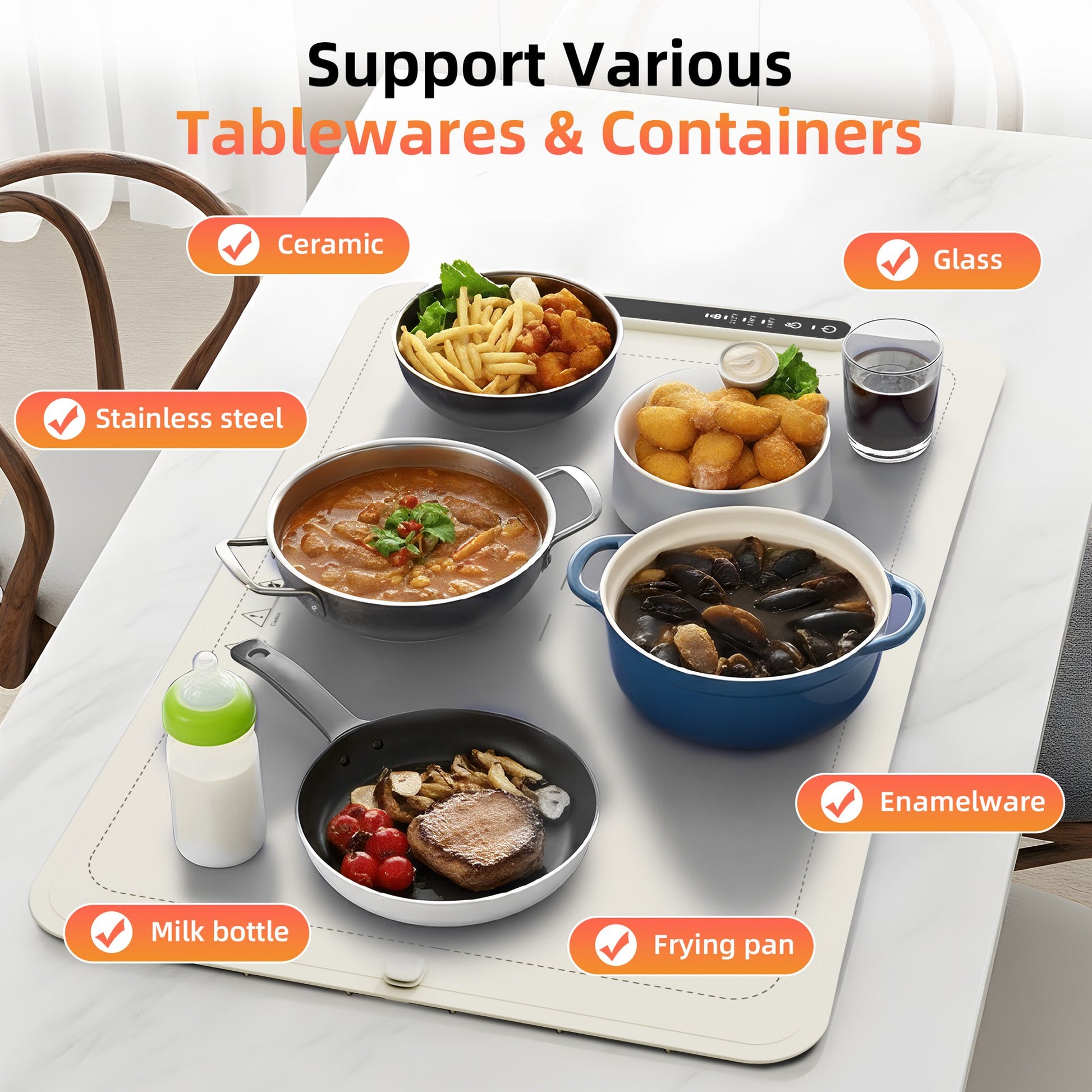 - 【Widely Compatible & Suitable for Various Occasions】Our electric heating tray adopts a universal design, compatible with tableware of all materials as long as they are high-temperature resistant. This food warmer is also a multi-functional household helper, easily handling mask heating, dough proofing, and food thawing. Suitable for home use in all seasons, it has a wide range of applications—whether it's family dinners, gatherings, events, parties, buffets, or trips, it can maintain the ideal temperature for food.