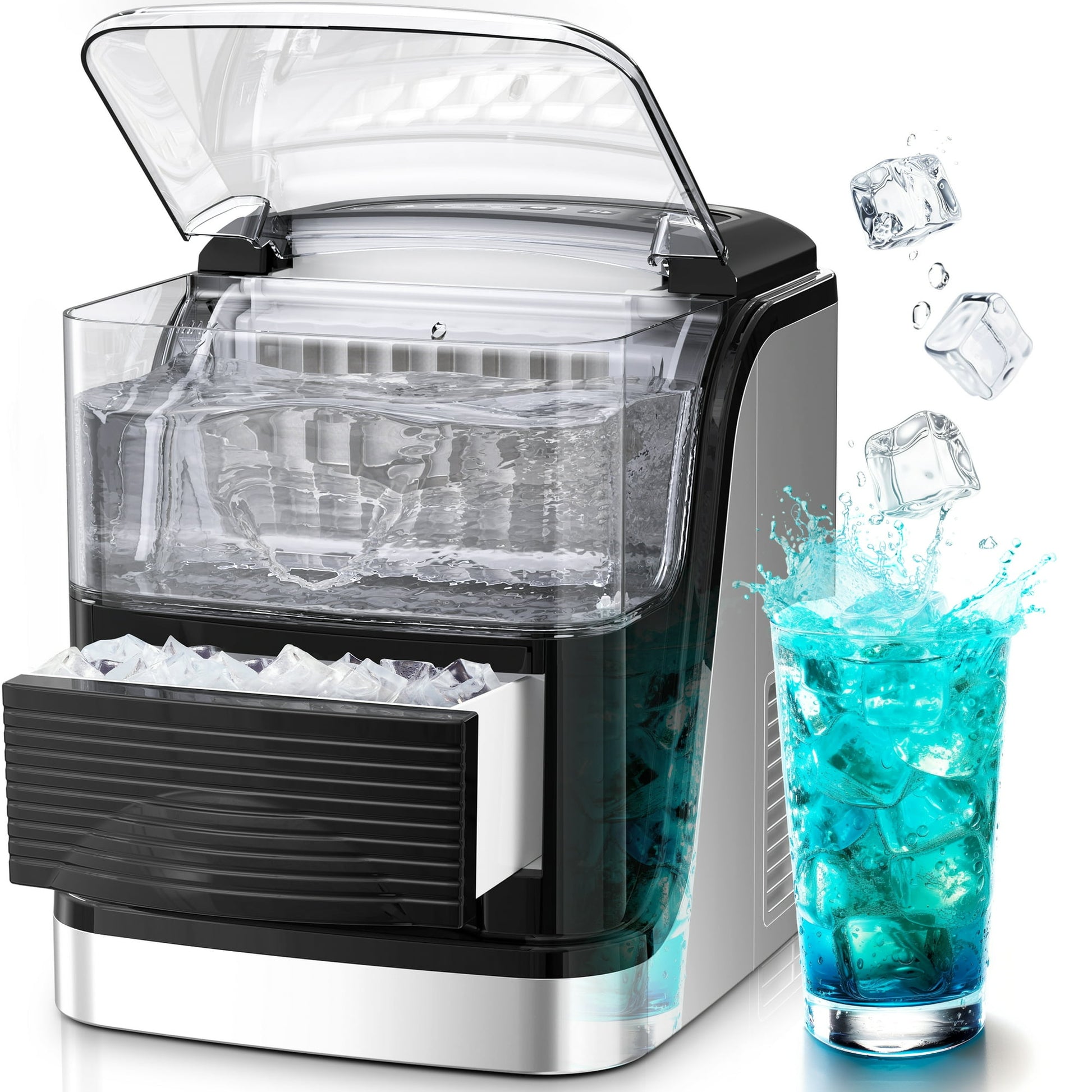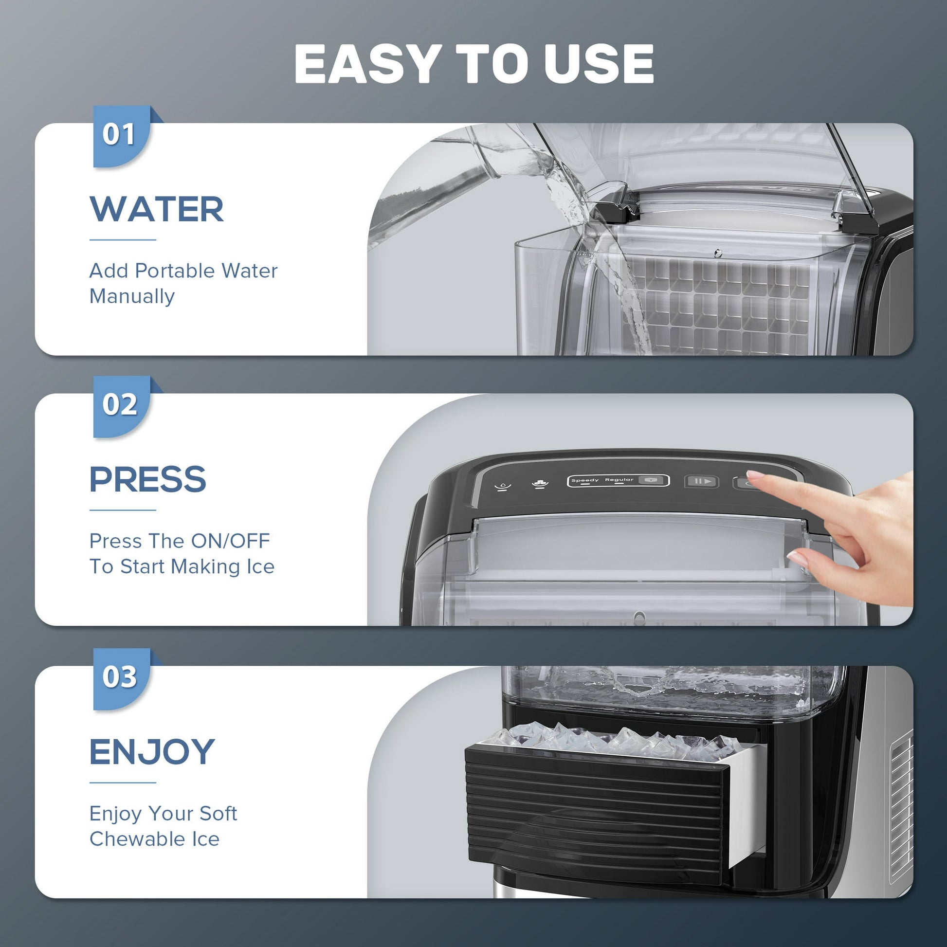 Auseo Ice Makers Countertop, 33lbs in 24Hour Ice Machine with Ice Basket, 2 Sizes of nugget Ice,Black