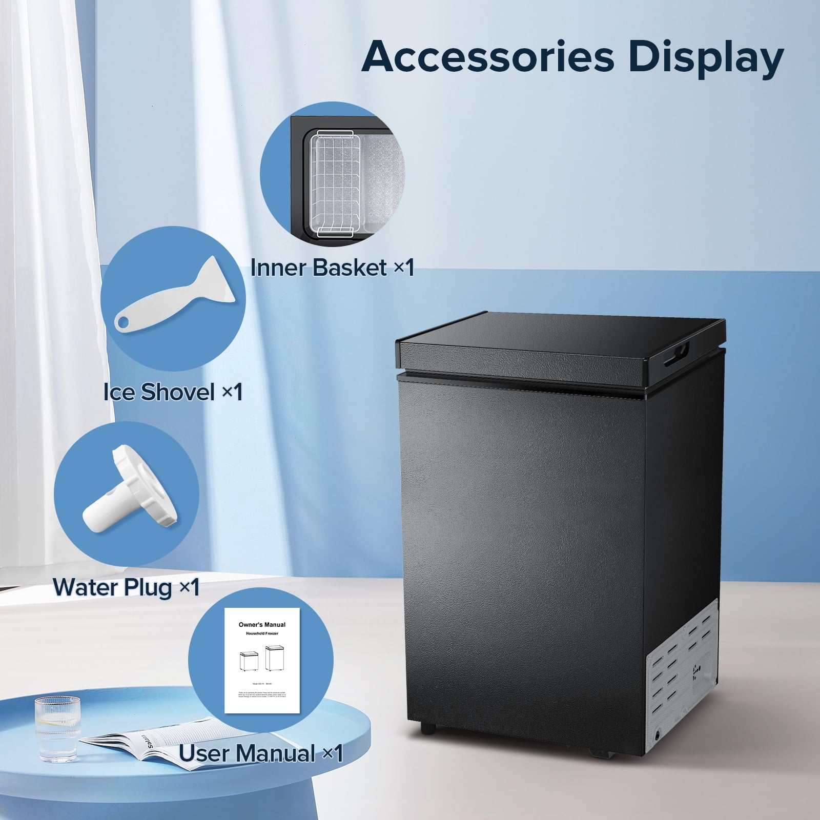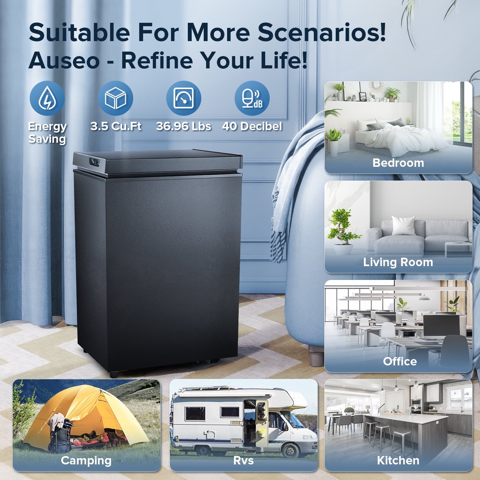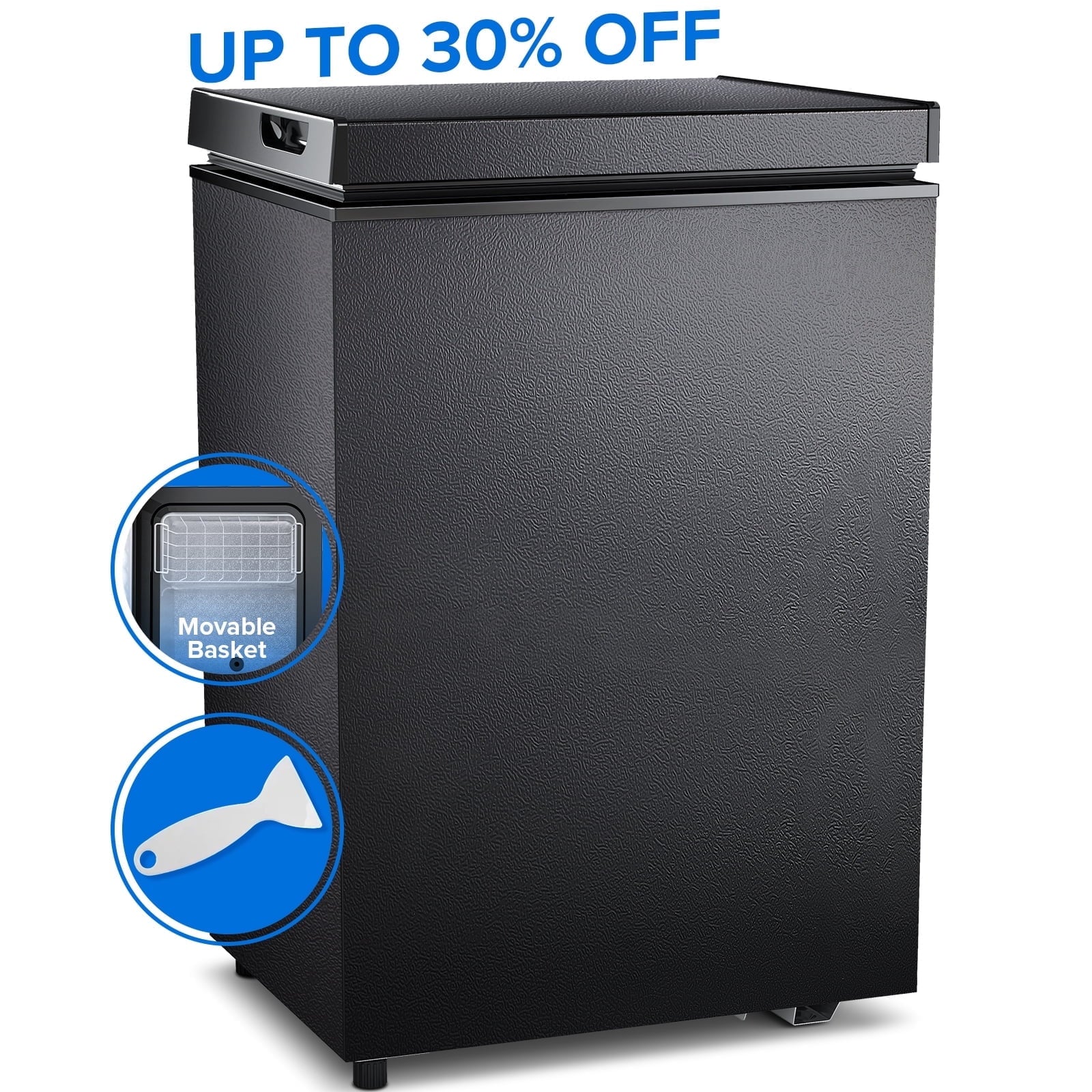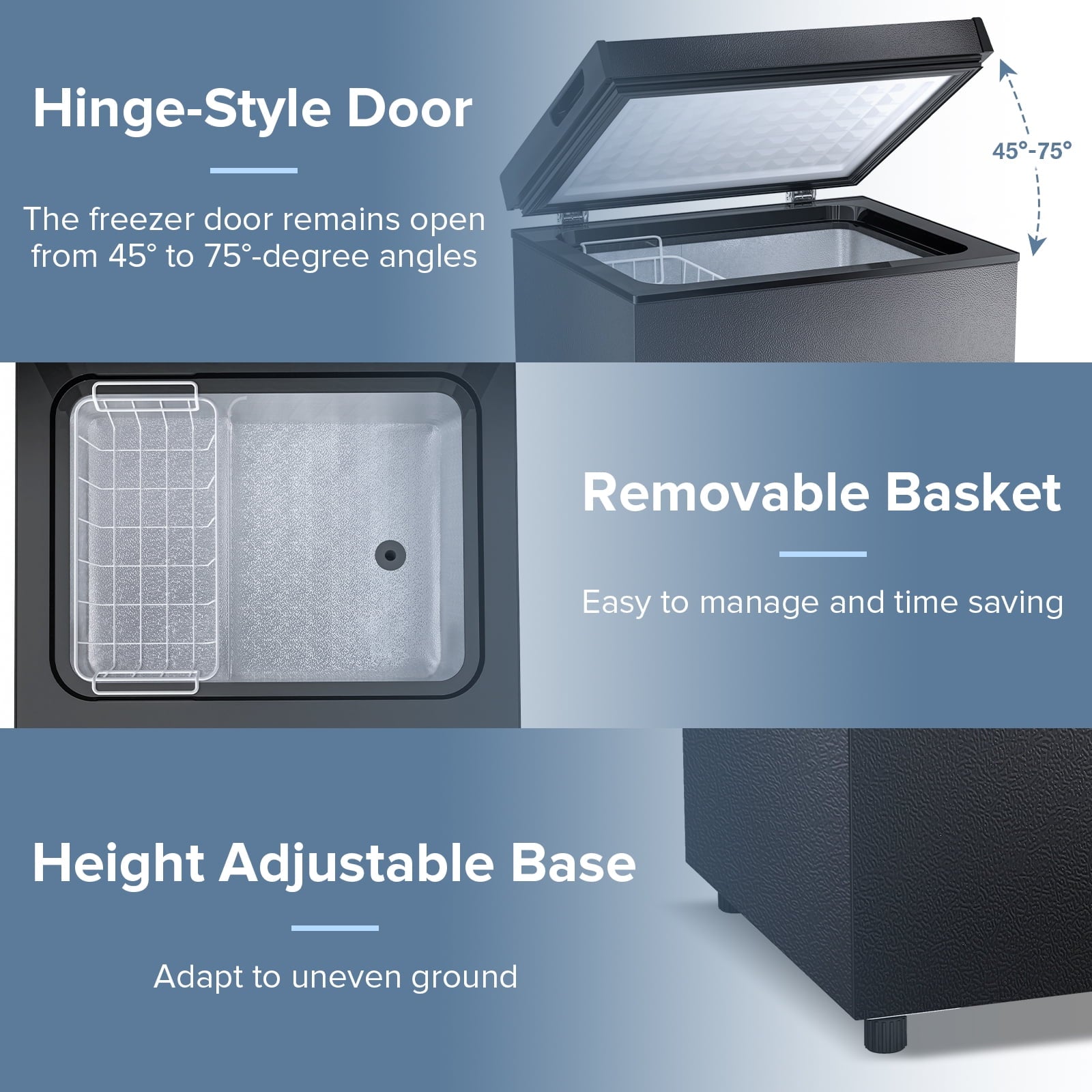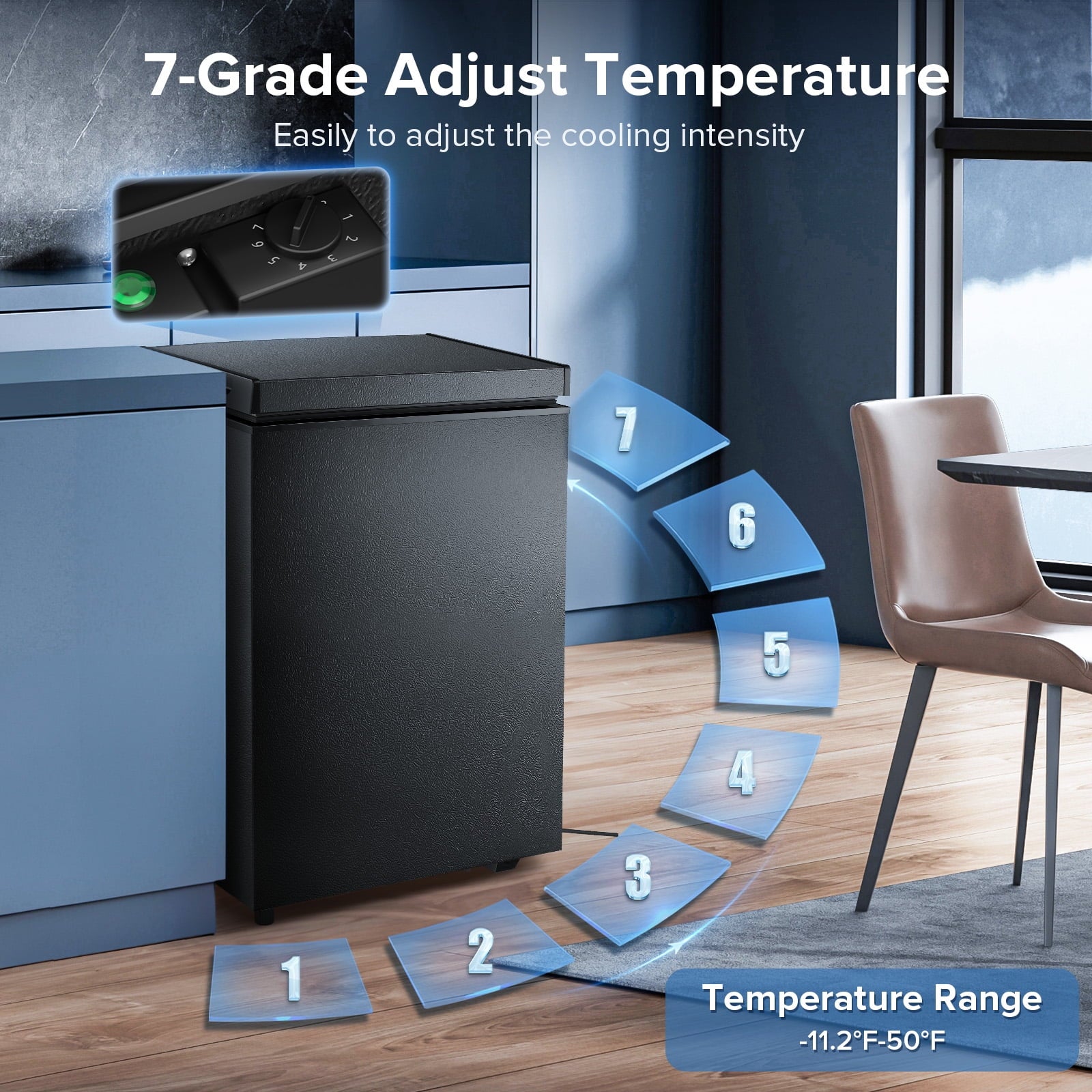 Auseo Mini Freezer Chest 3.5 cu ft, Black Deep Freezer & Side Handle, Compact Freezer with 7 Gear Adjustable Temperature, Removable Storage Basket, Energy Saving