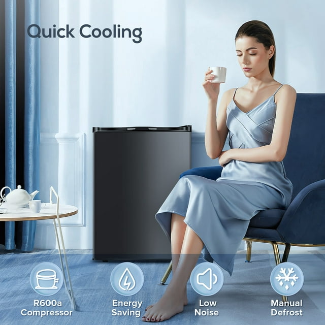 Auseo Mini Freezer Countertop, Energy Saving 2.1 Cu.ft, Single Door Compact Upright Freezer with Reversible Door for Home/Office/Kitchen-Black