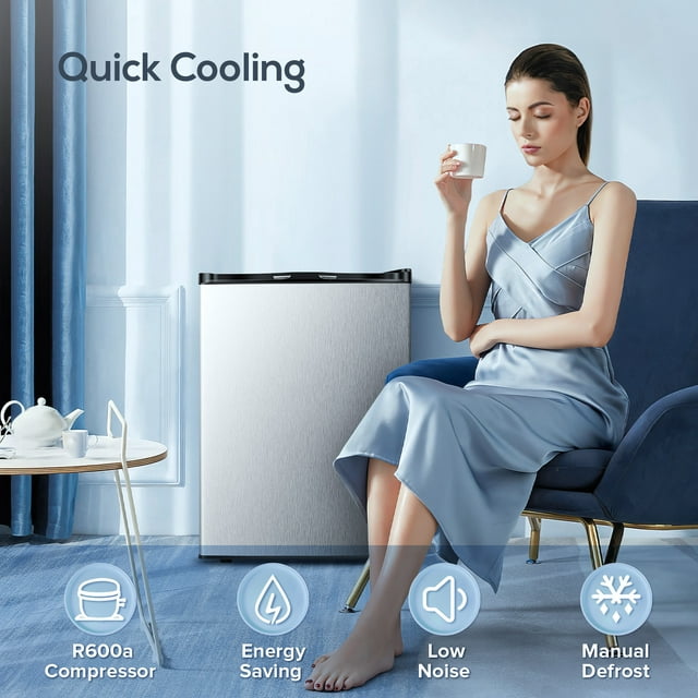 Auseo Mini Freezer Countertop, Energy Saving 2.1 Cu.ft, Single Door Compact Upright Freezer with Reversible Door for Home/Office/Kitchen-Silver