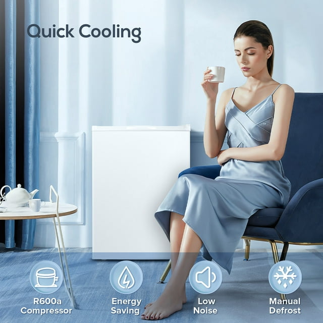 Auseo Mini Freezer Countertop, Energy Saving 2.1 Cu.ft, Single Door Compact Upright Freezer with Reversible Door for Home/Office/Kitchen-White