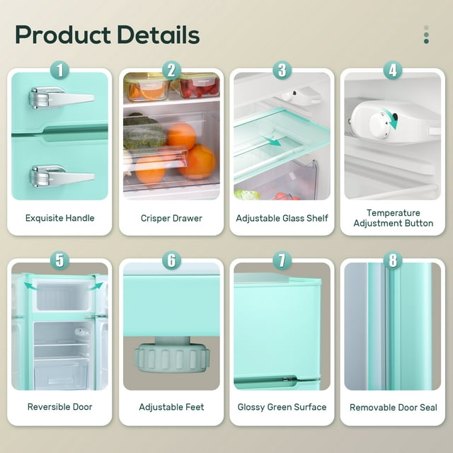 Auseo Mini Fridge 3.1Cu.ft 115 Volt 60 Hz Low Noise Adjustable Temperature Suitable for Kitchen Living Room Office and Dormitory Green