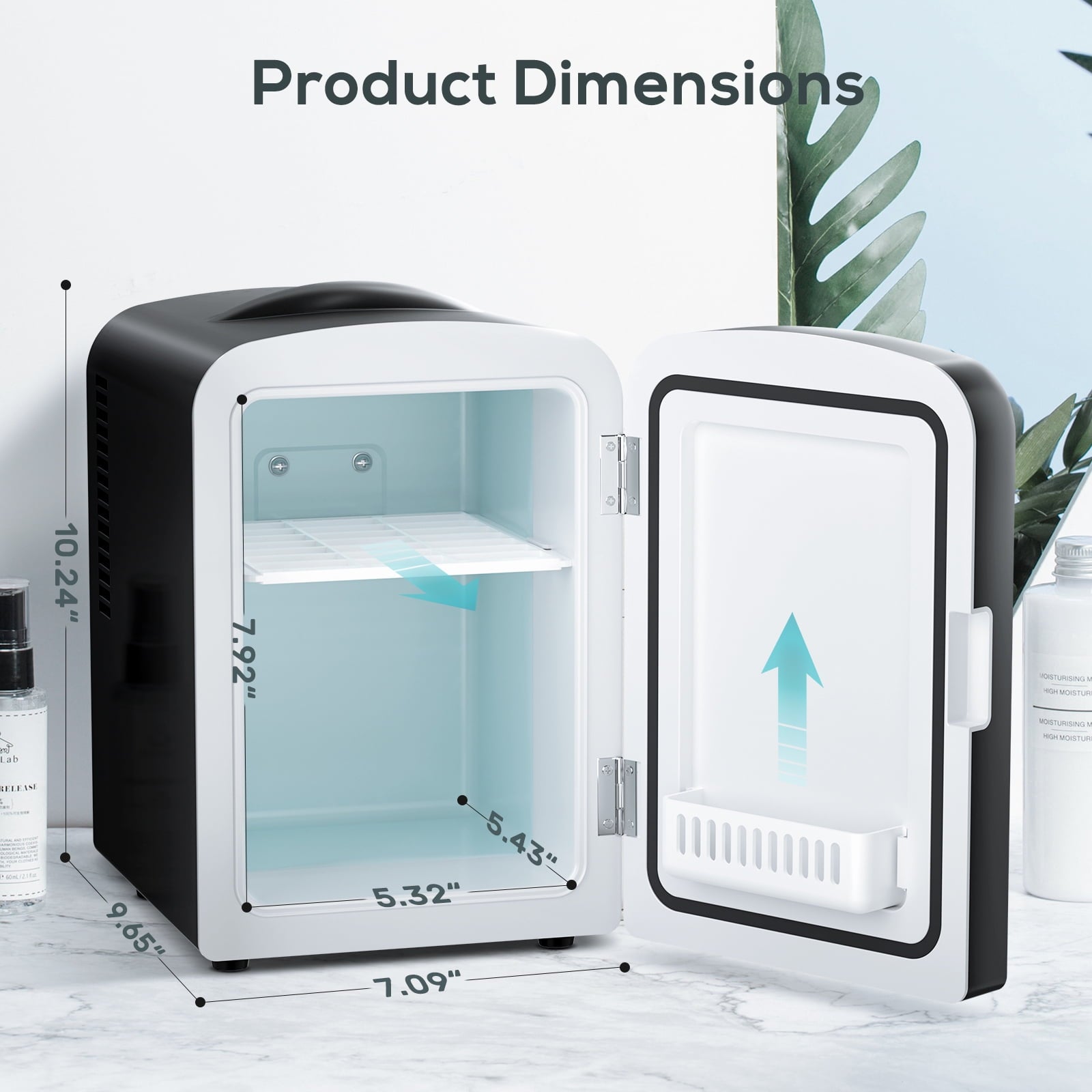 - 🎀[Tailored Organization]: It comes with removable double shelves and an inner door storage rack that provides a dedicated space in addition to the main refrigerator. Experience organized storage like never before, holding a variety of personal favorites, from skincare essentials to hydrating beverages, snacks and more, all within easy reach.