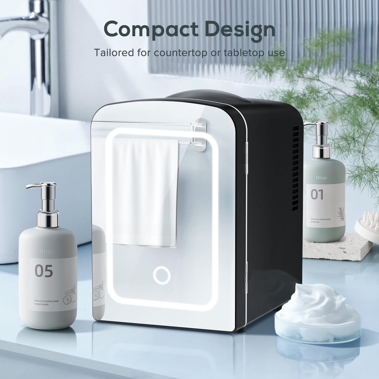 - 🎀[SMART LIGHTING]: Enhance your experience with LED-illuminated mirrored doors with easy control of the on/off touch function, adding style and convenience to your snacking time and helping when you need to apply makeup.