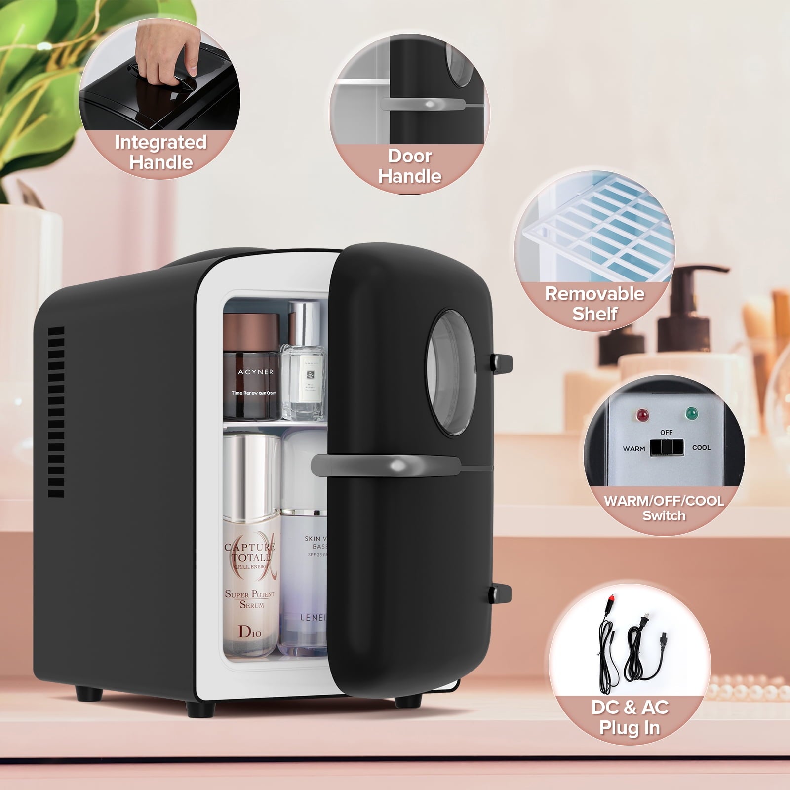 Auseo Mini Fridge, Portable Fridge Personal, 4 Liter/6 Cans Countertop, 120V AC/ 12V DC, Cooler and Warmer for Drink Office Dorm Bedroom Car, Black