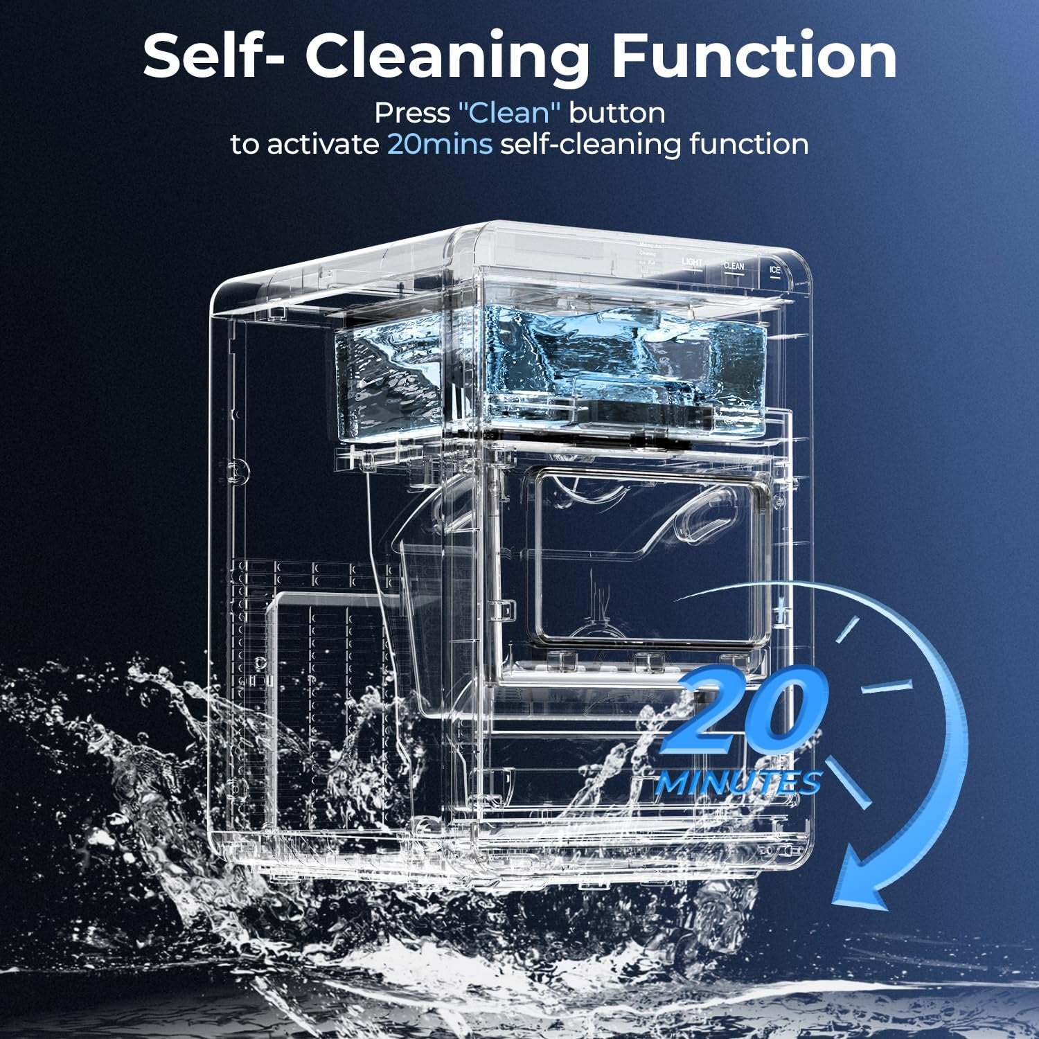 - Hygienic 20-Minute Self-Cleaning: Maintain pristine ice quality with the one-touch self-cleaning function that thoroughly sanitizes your portable ice maker countertop in just 20 minutes - no scrubbing or harsh chemicals needed.